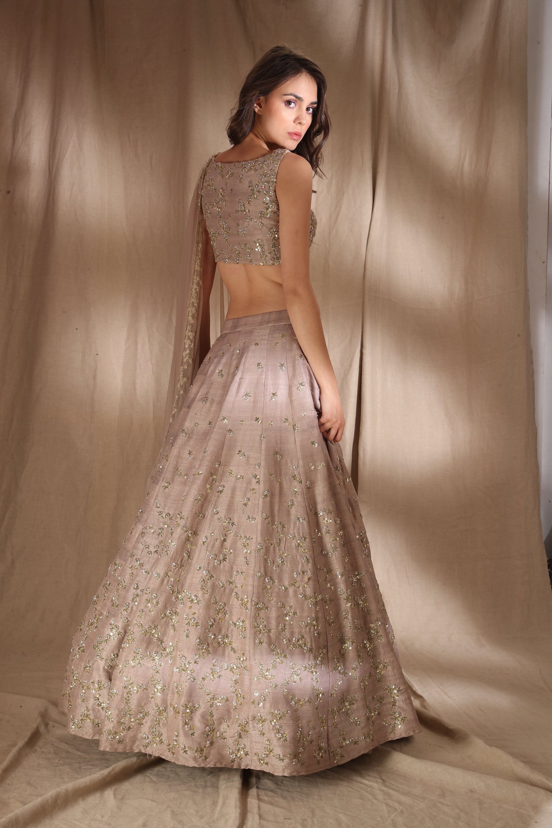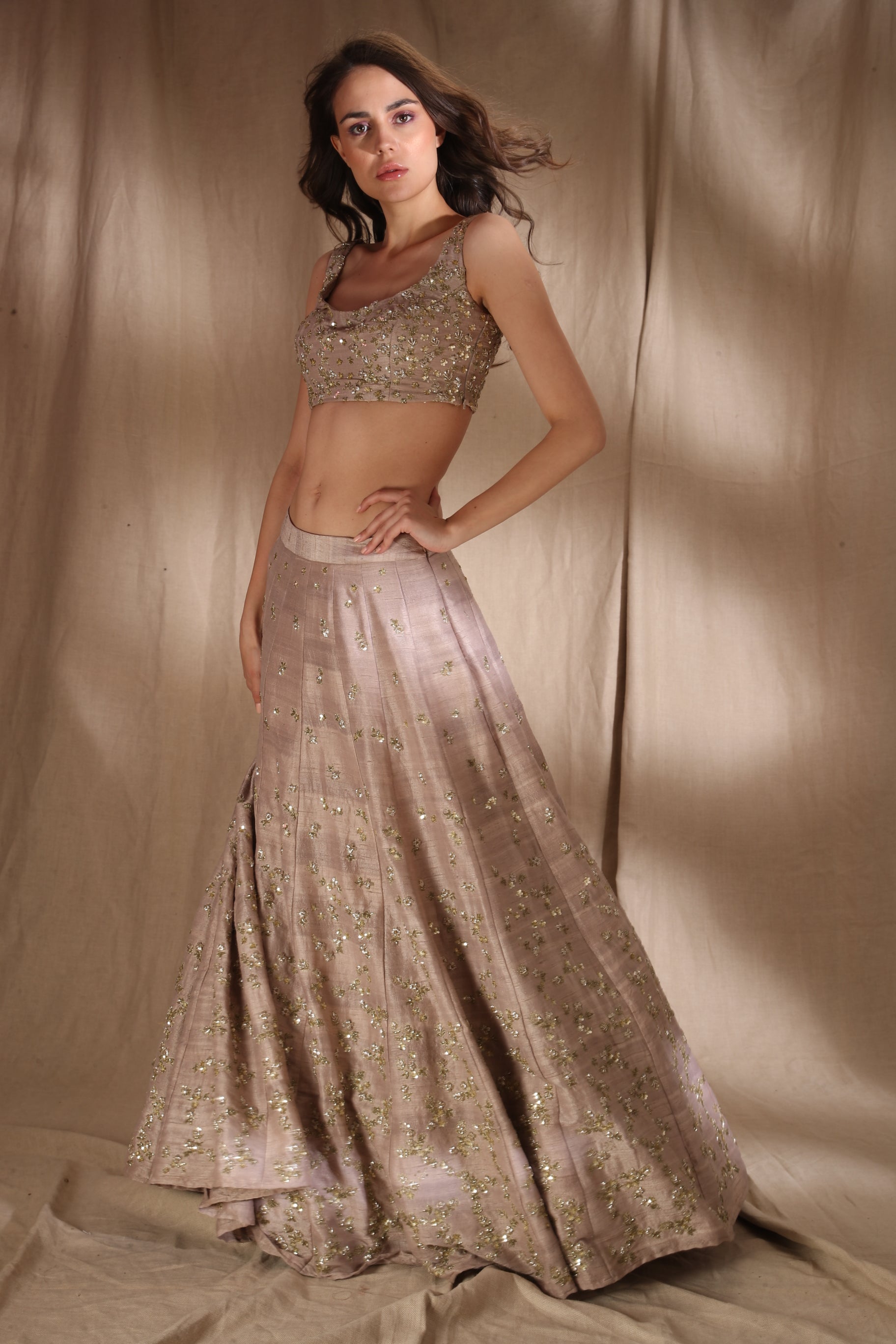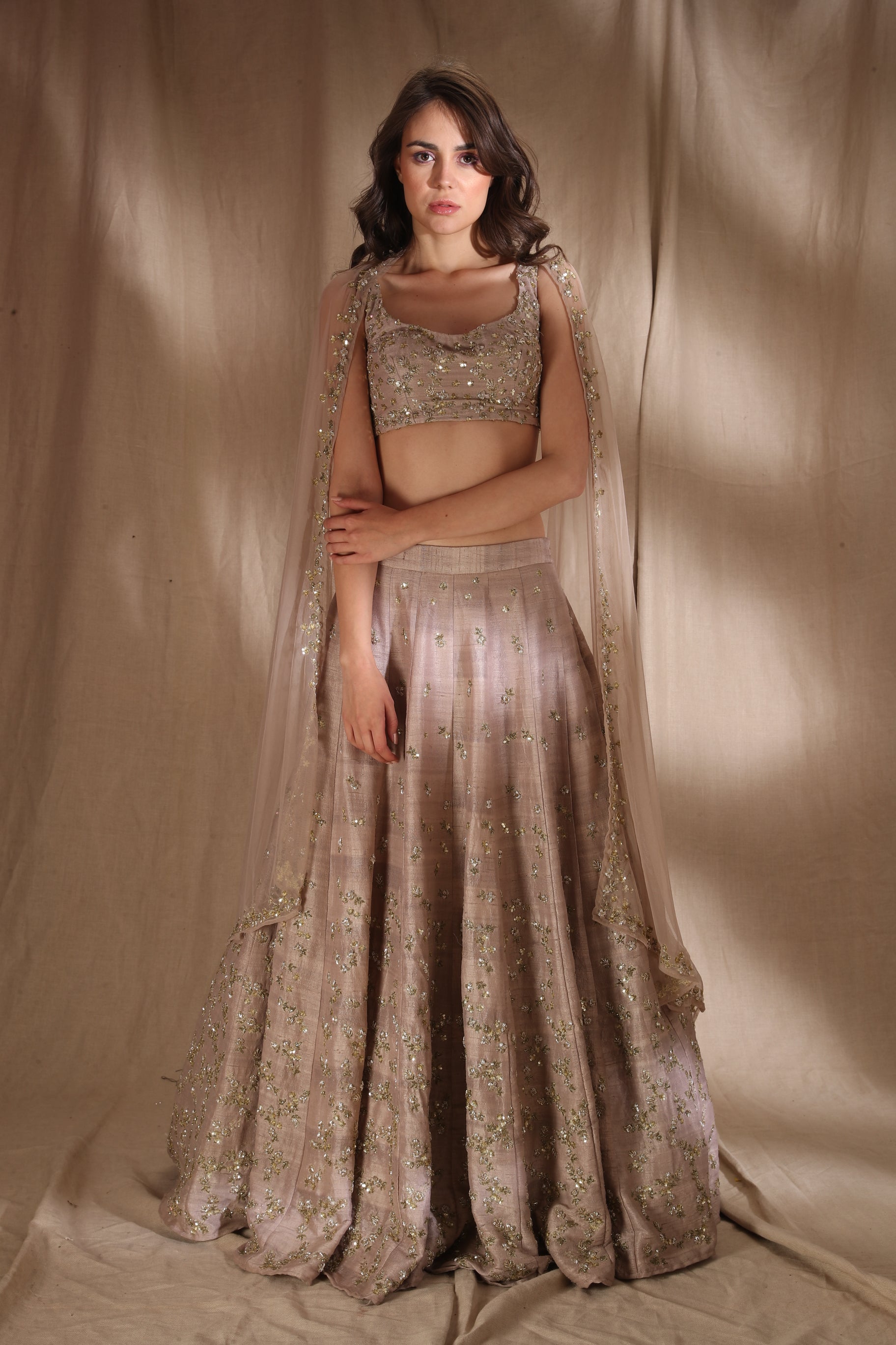 Featuring a GREY BROWN RAW SILK LEHENGA IN RAWSILK.