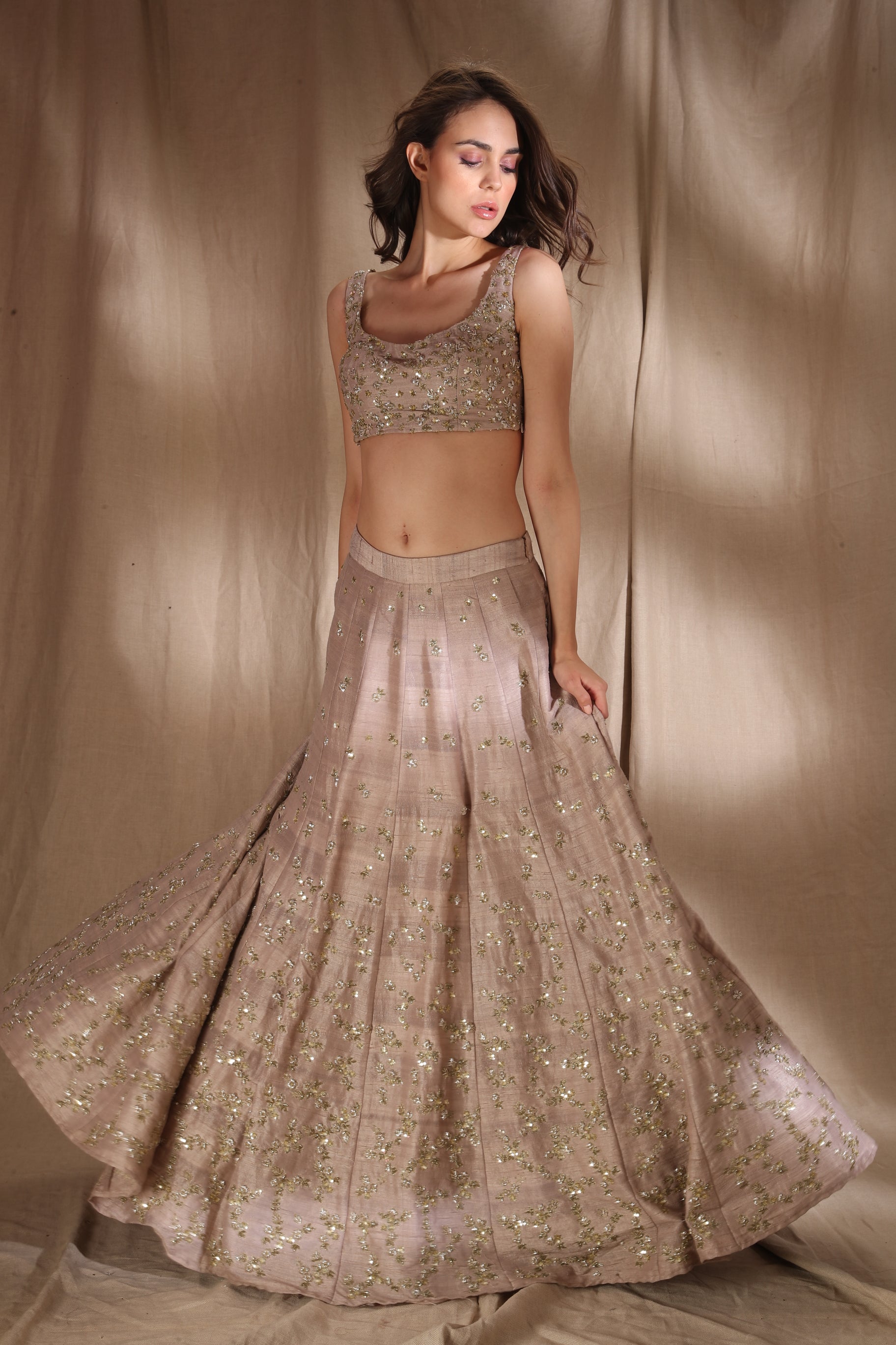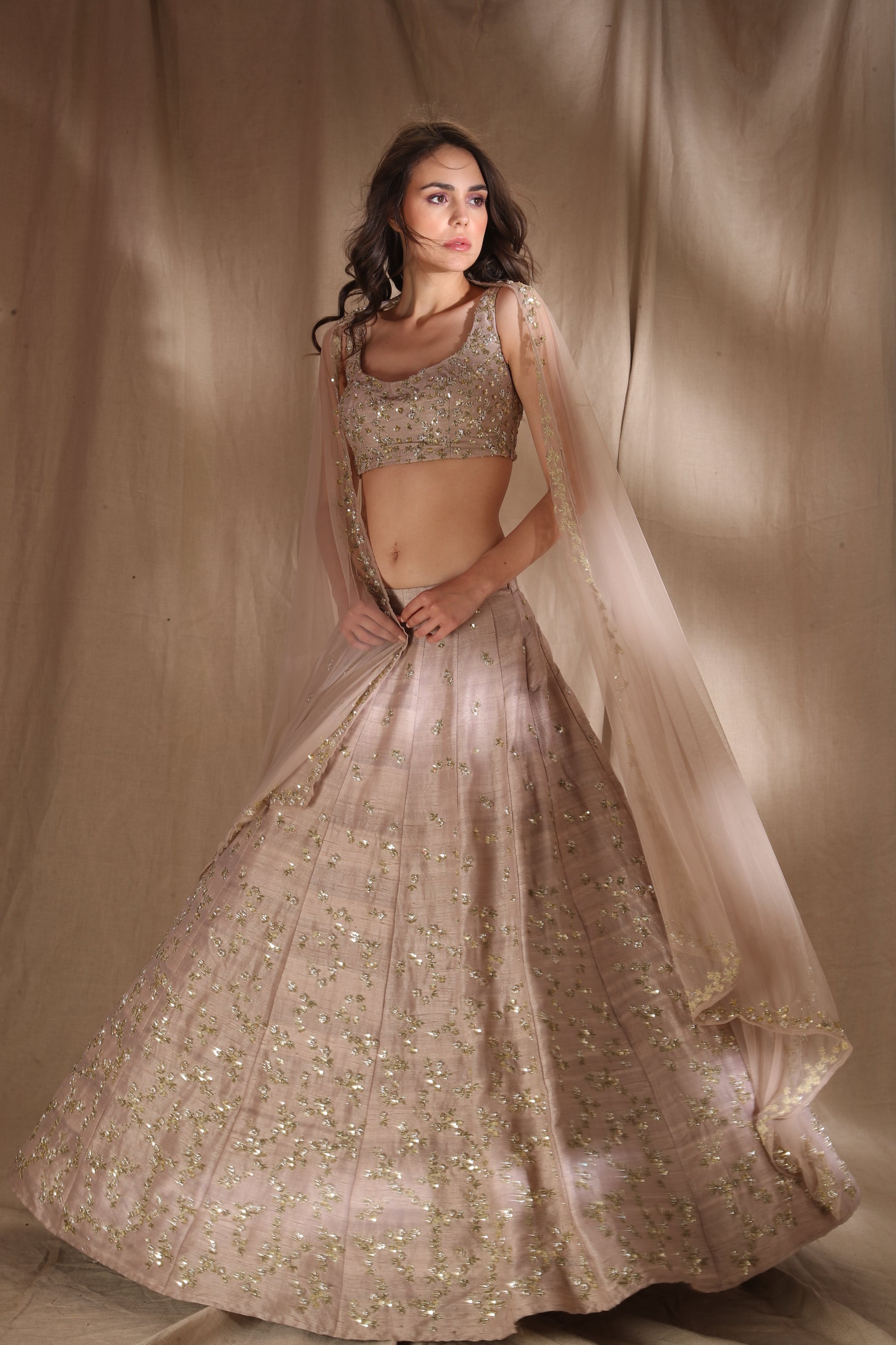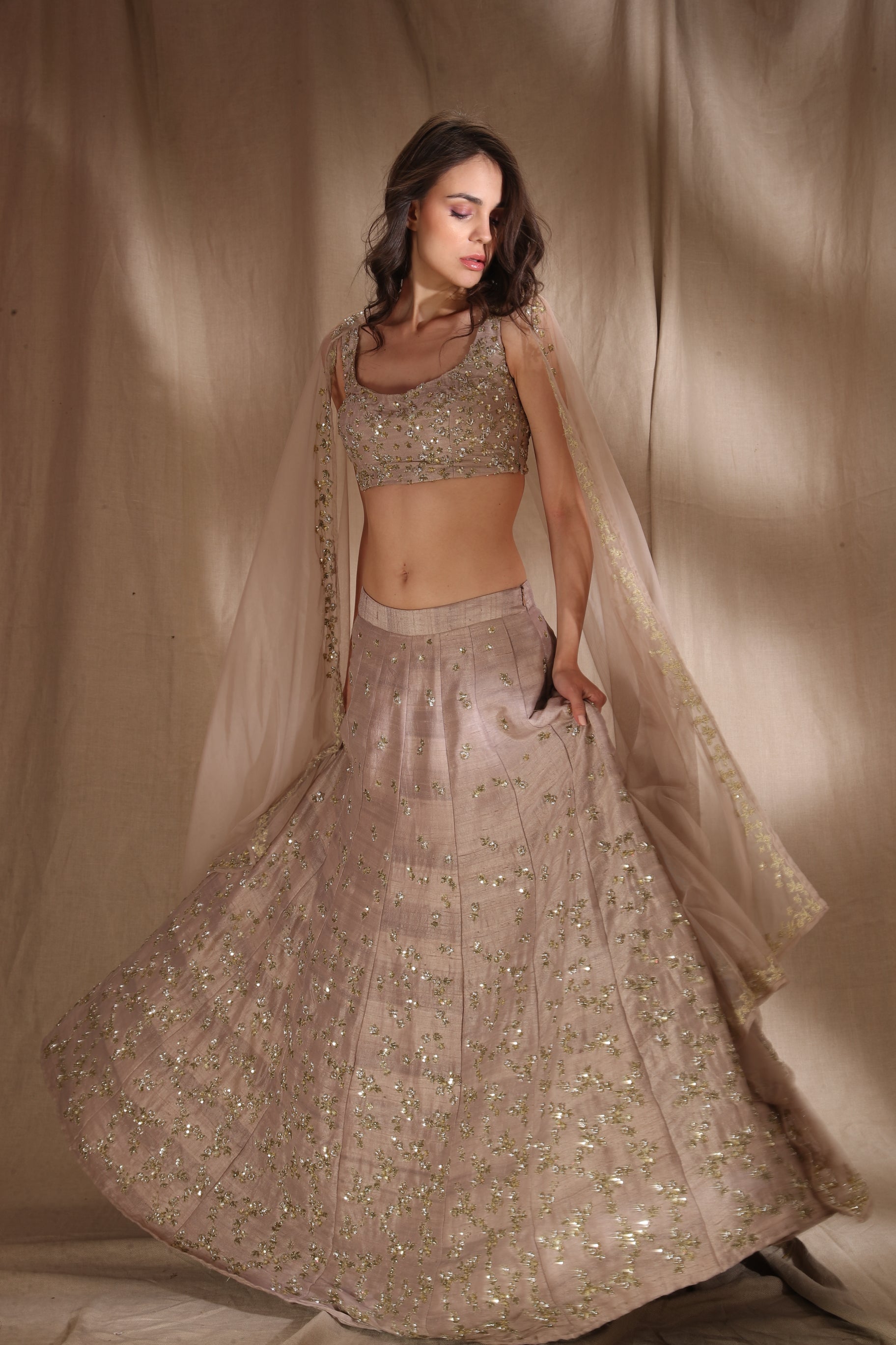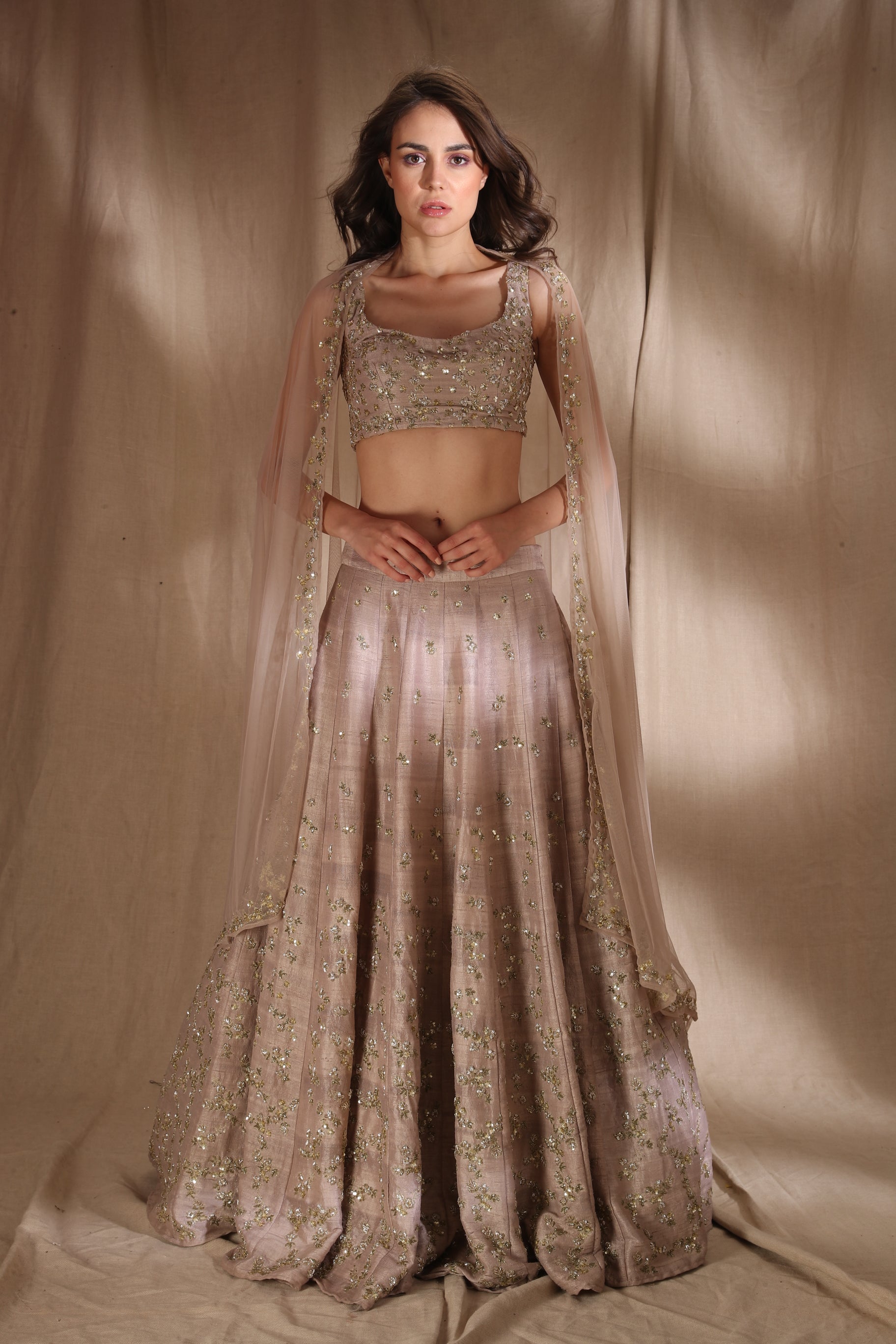 Featuring a GREY BROWN RAW SILK LEHENGA IN RAWSILK.