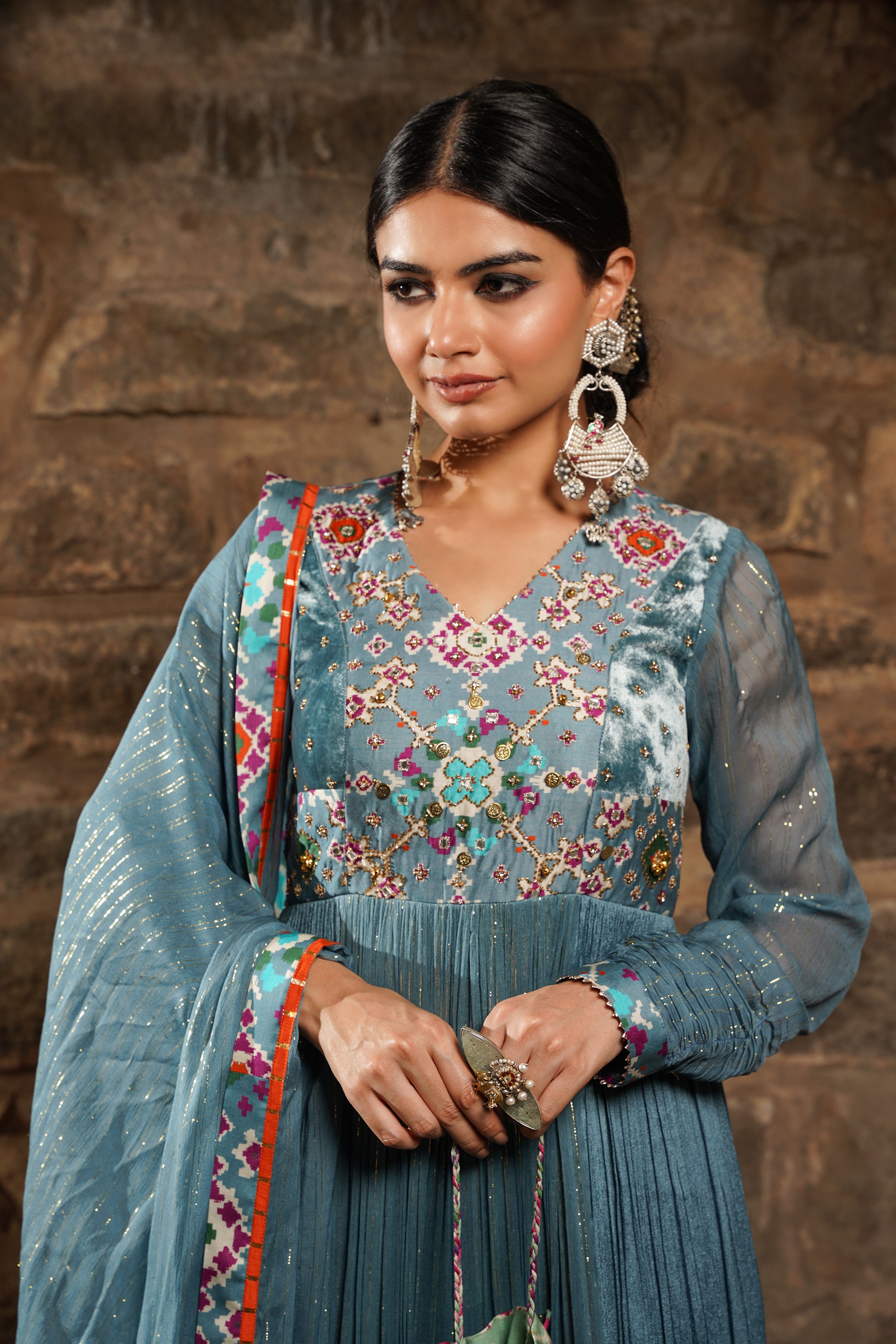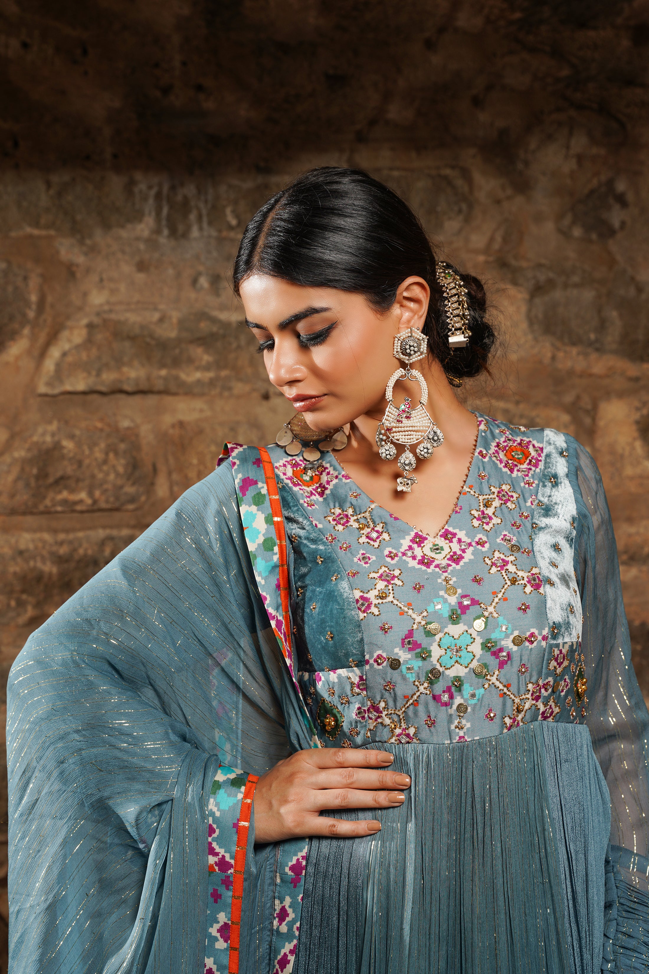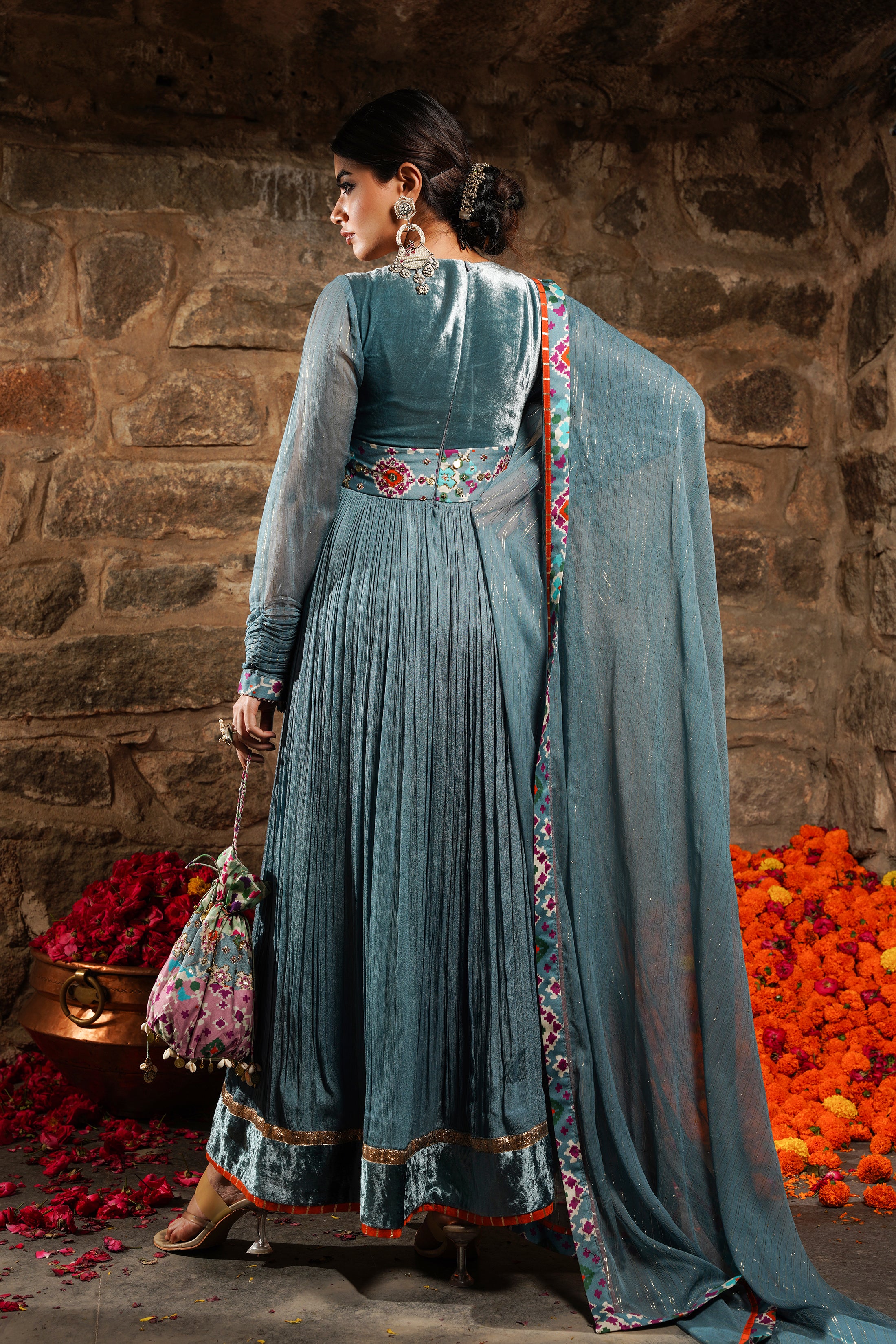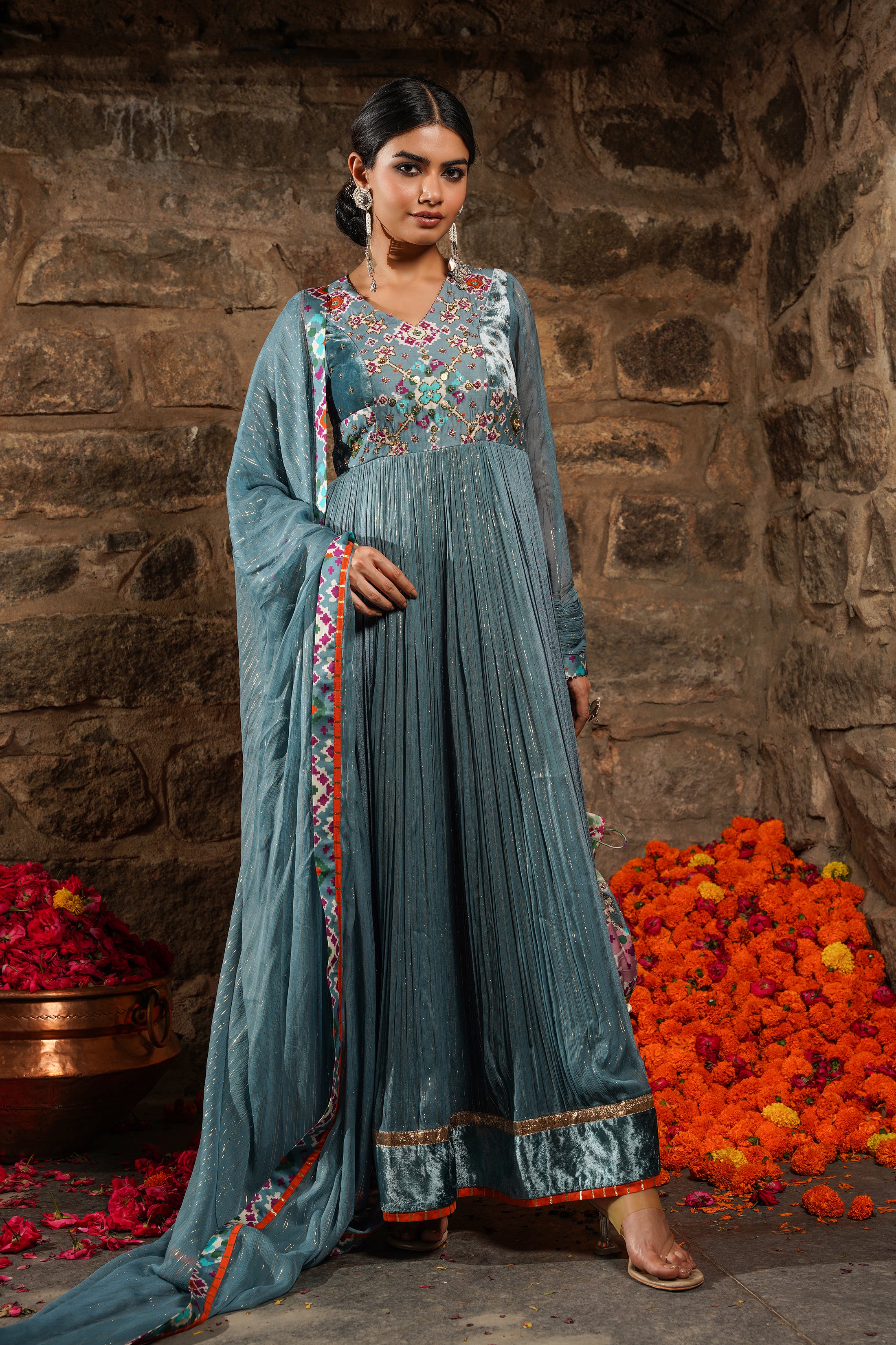 Gulbahar- Pearly Mist Grey Anarkali Set