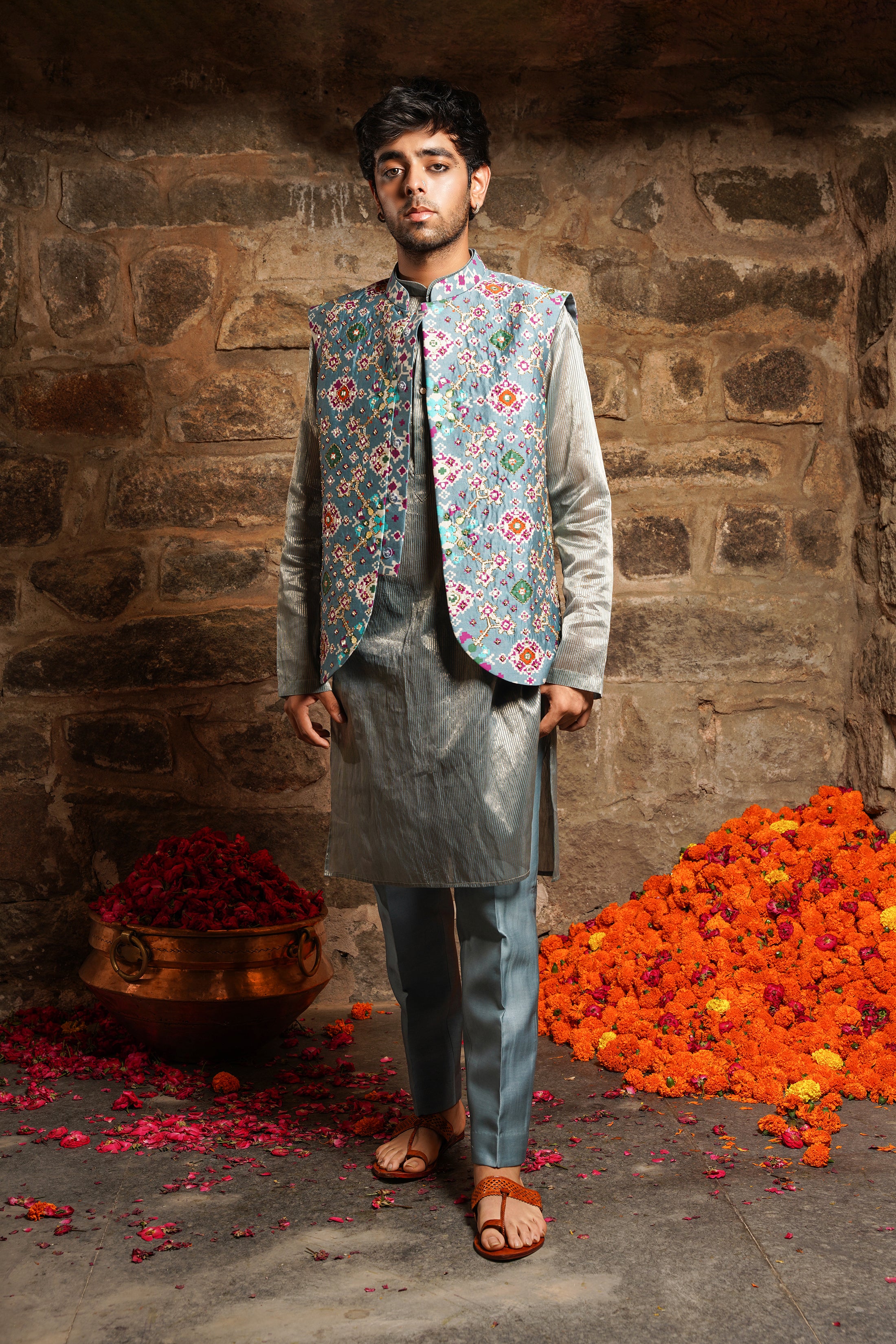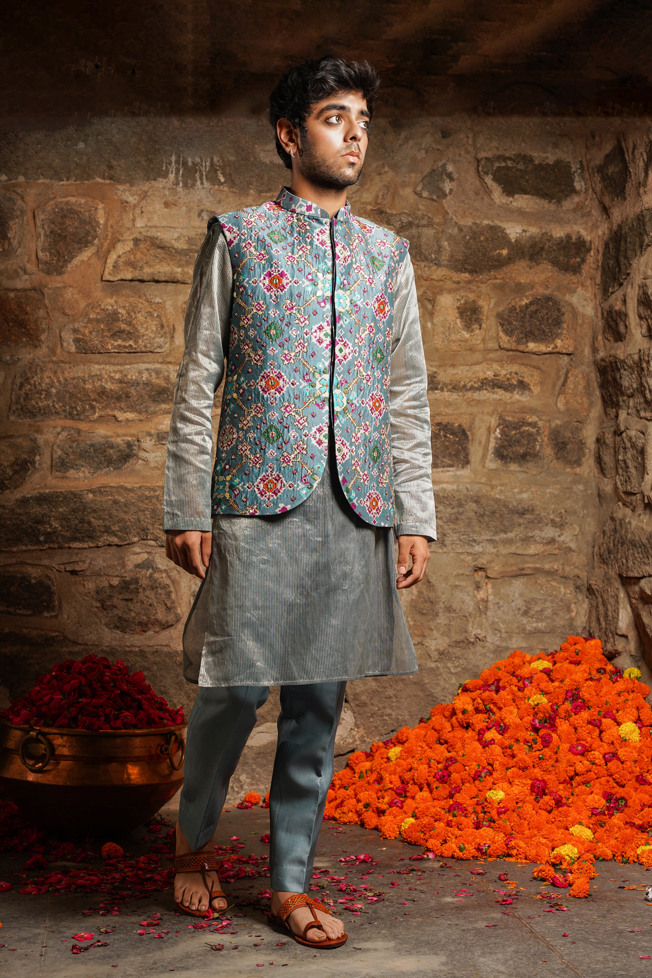 Featuring pearly mist green kurta set, the epitome of sartorial refinement for cultural festivities and formal gatherings. This ensemble stands as a testment to the enduring allure of classic fashion with a modern twist. This attire is perfect for festive celebrations.