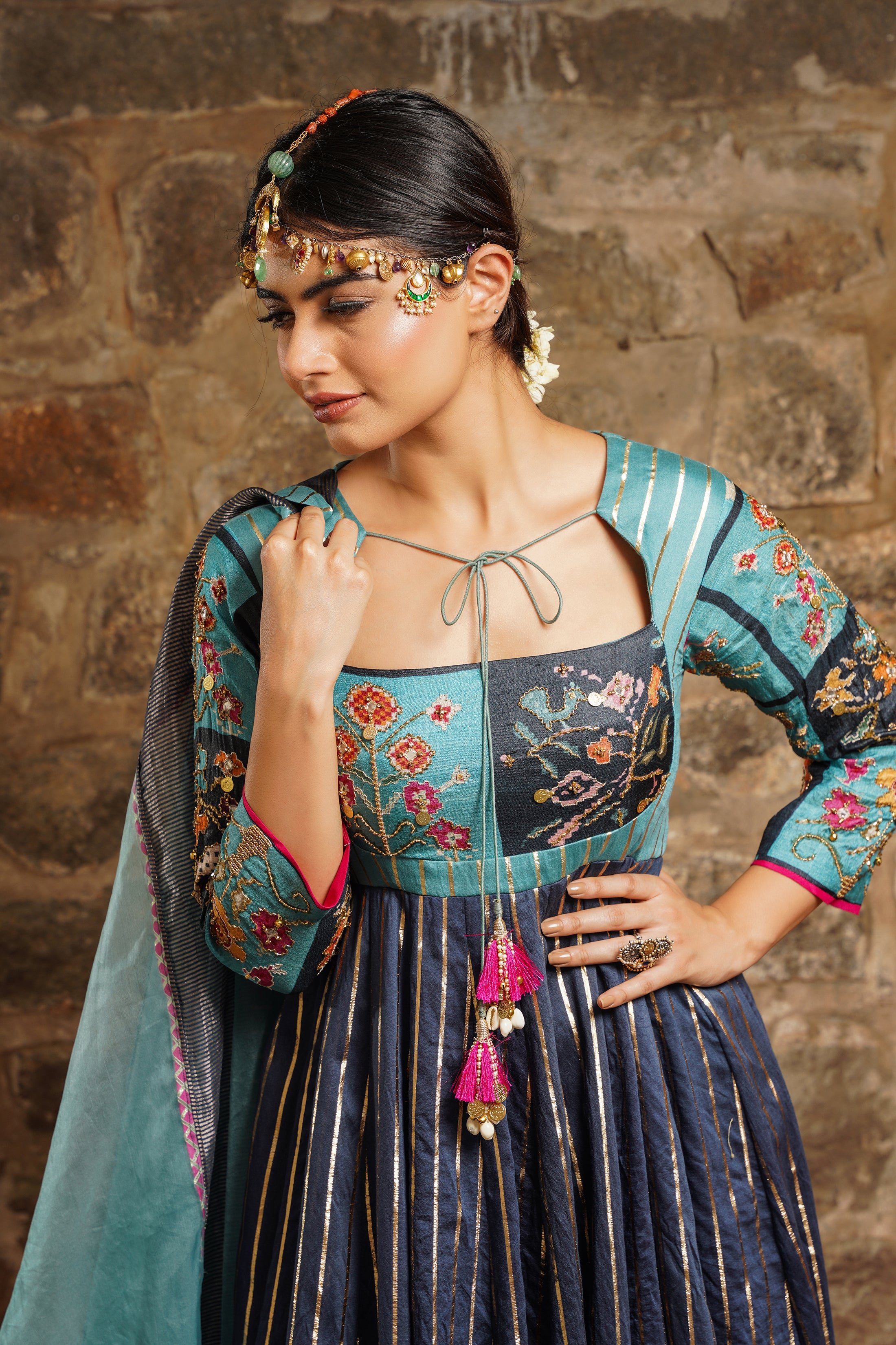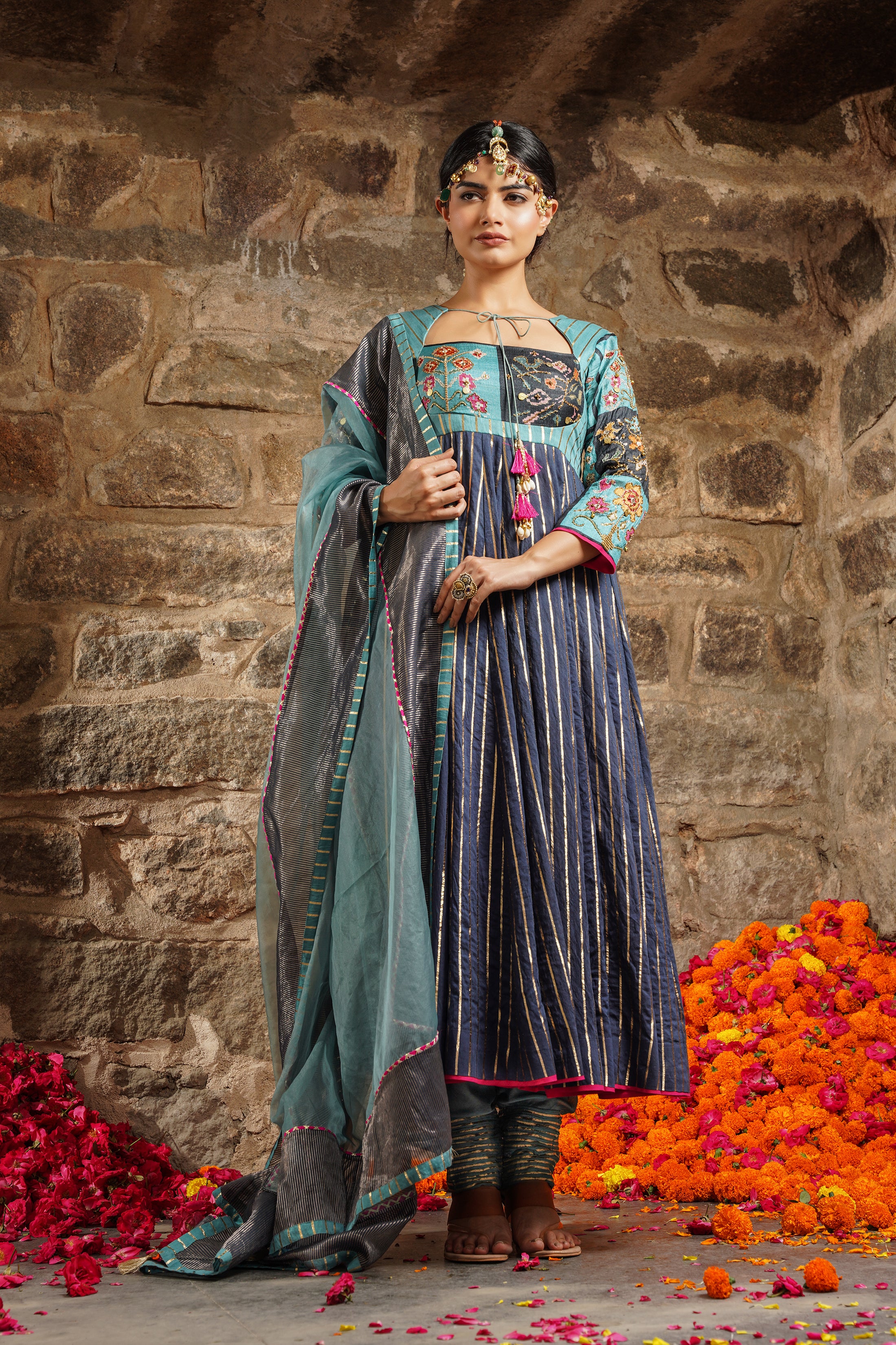 Hasrat- Exquisite Oceanic Blue Anarkali Set