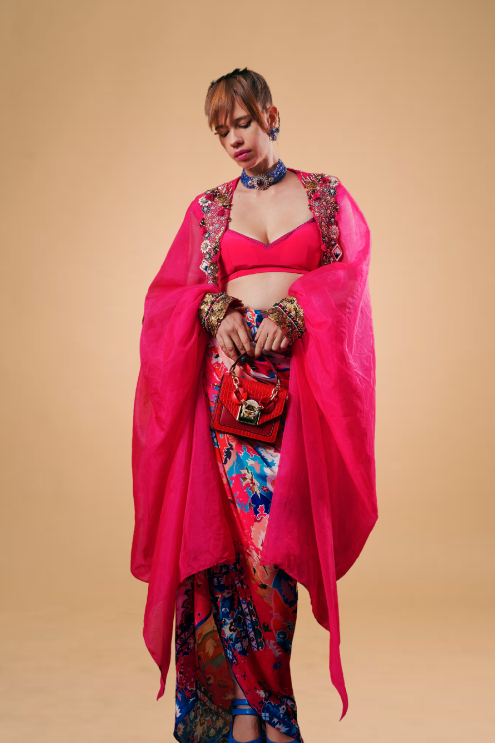 Kalki Koechlin in Hot pink draped skirt with blouse & cape