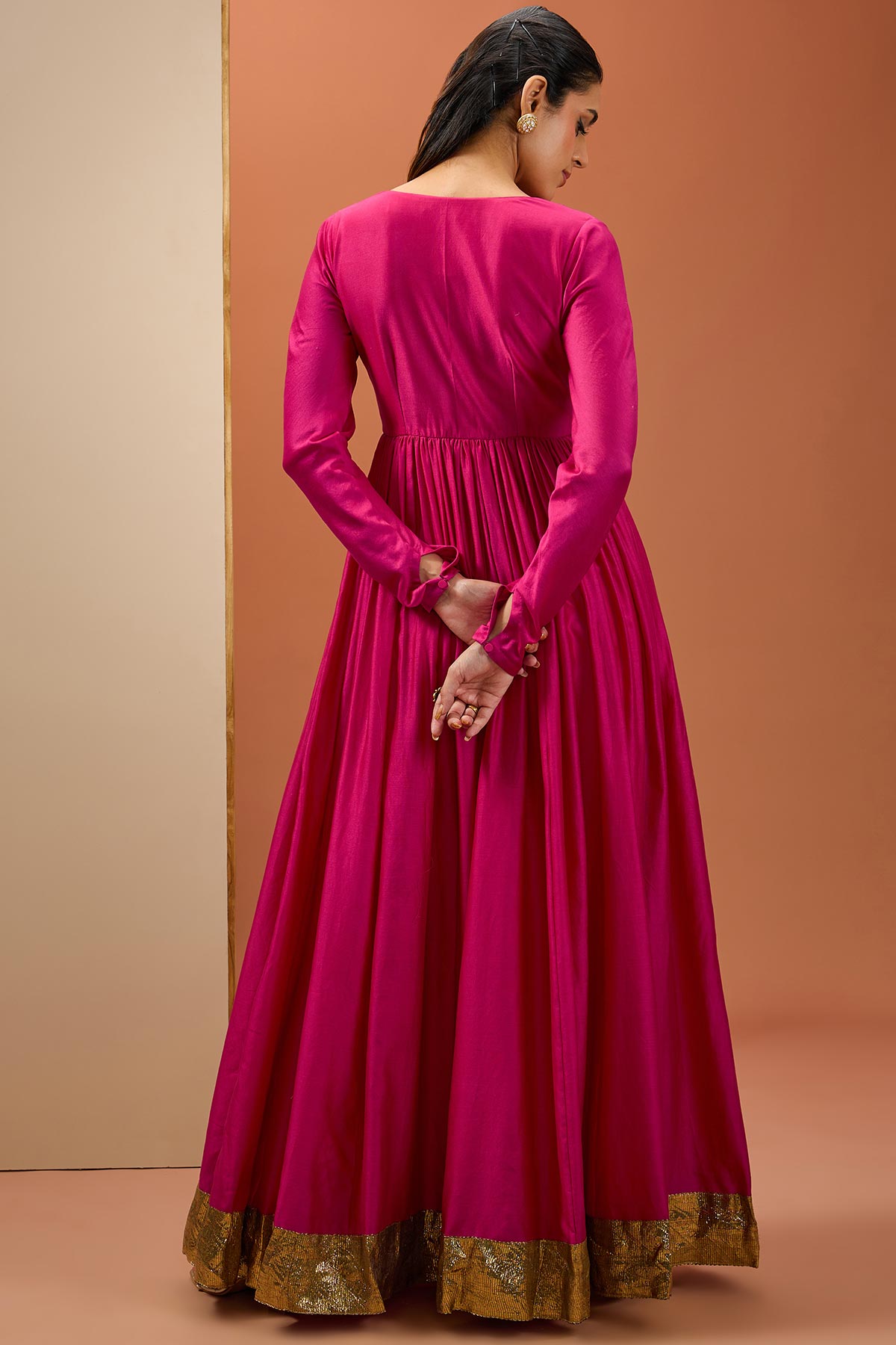 This Consists of Front cut Anarkali with Lampi border on Hemline. It is paired with loose pants .