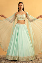 CONSIST OF ICE BLUE GOTA WORK TOP ON GEORGETTE FABRIC WITH CHANDERI SKIRT AND NET CAPE