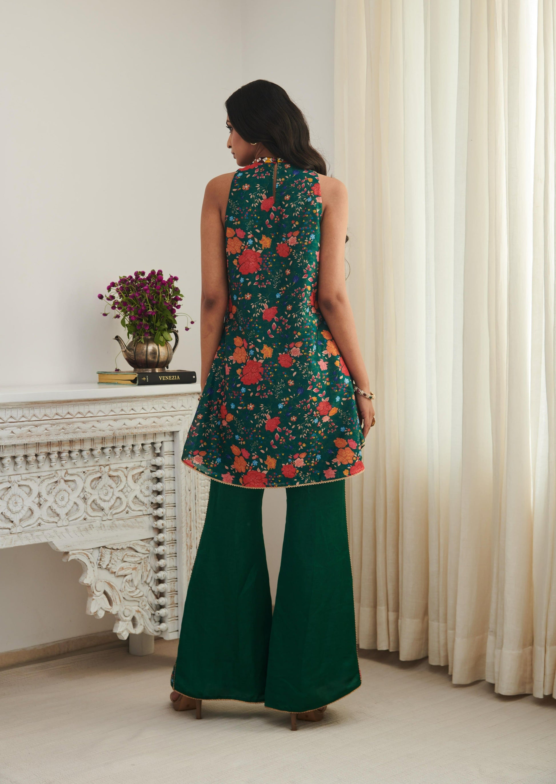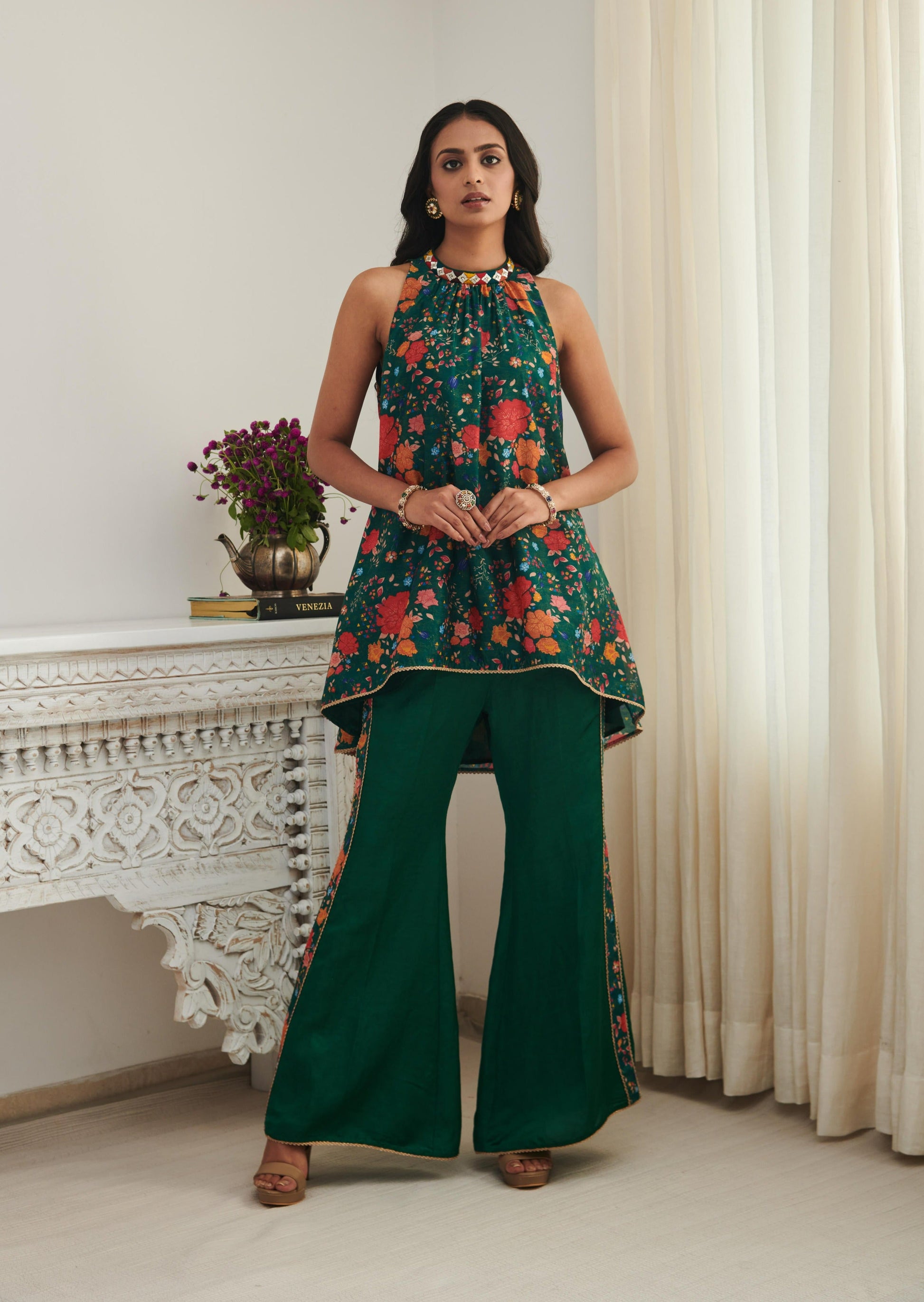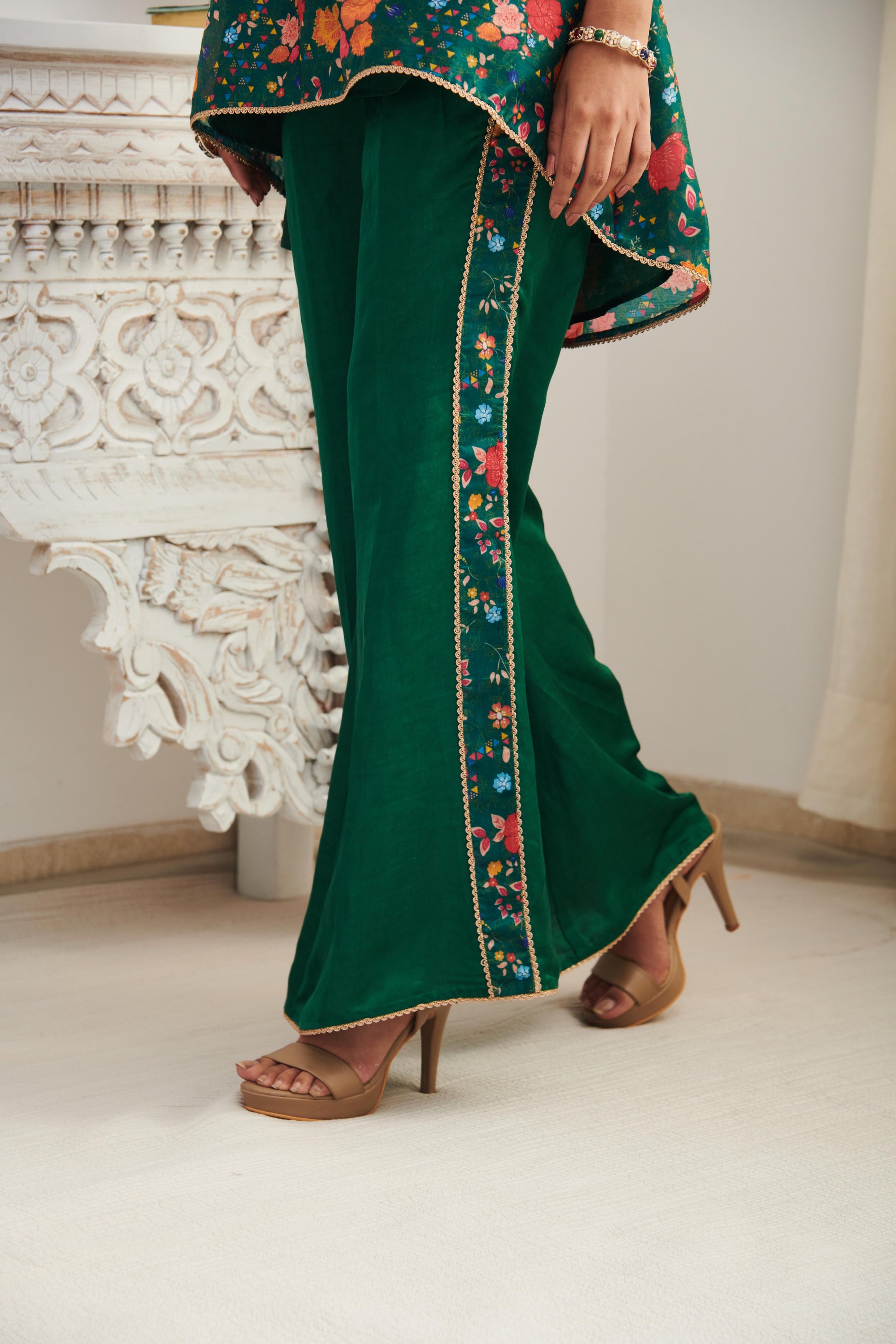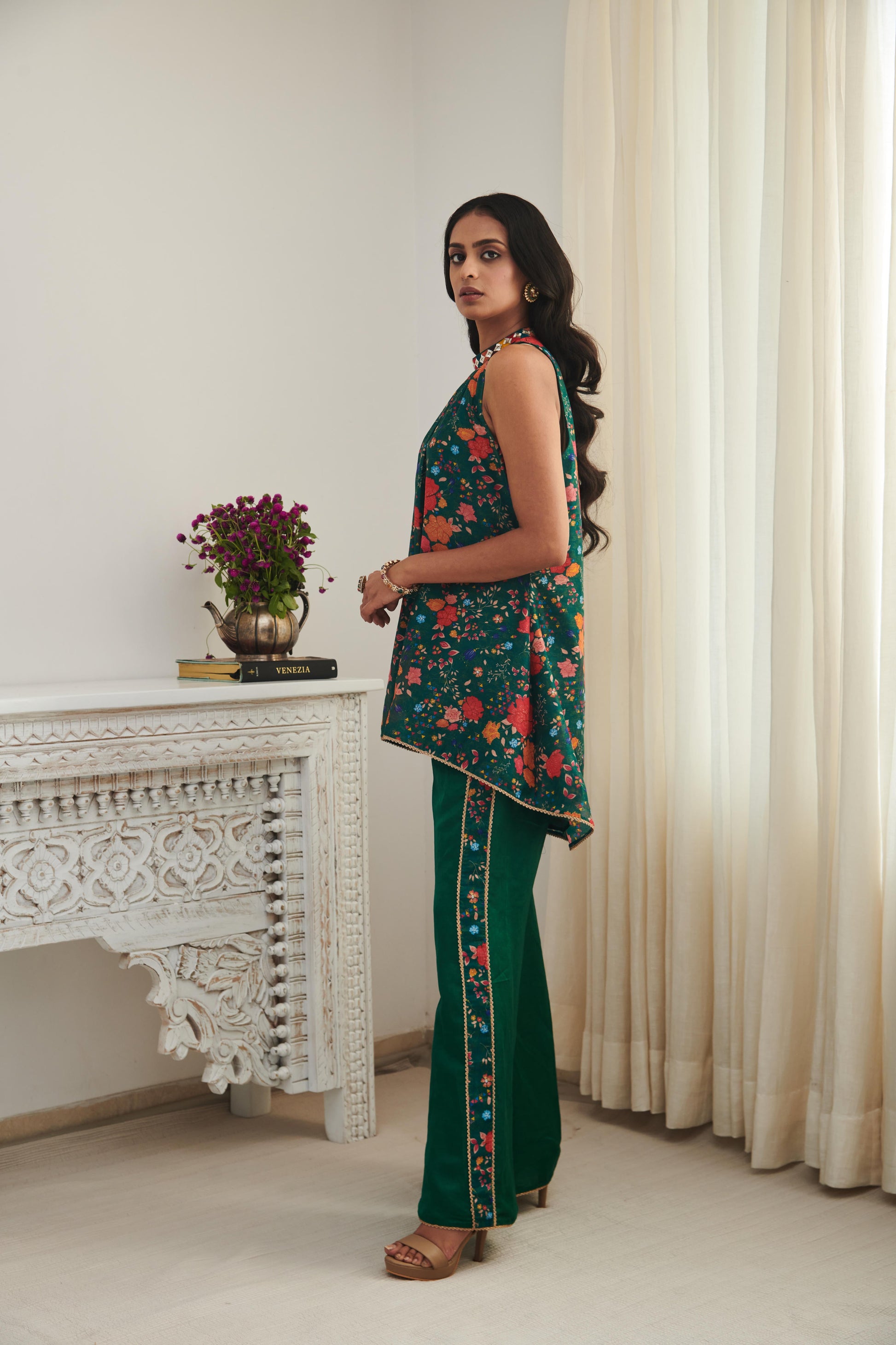 Fabric: Chanderi kurta with linen satin trousers