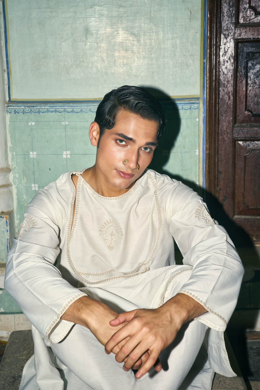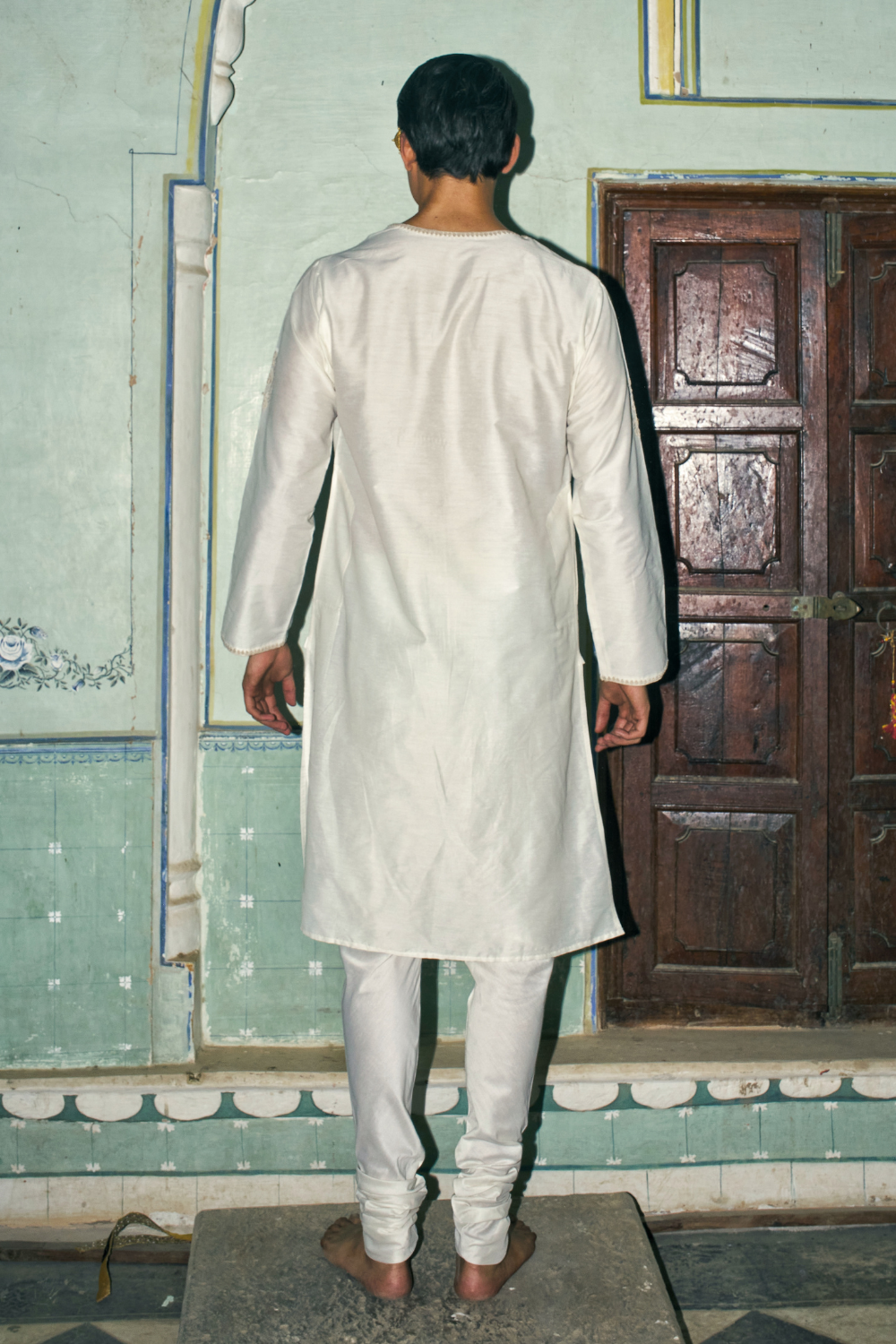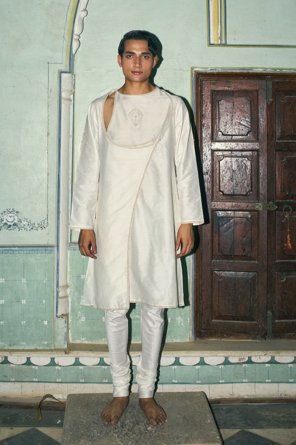 Ivory cotton-silk angrakha paired with a churidar salwar