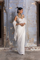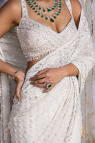 Ivory Georgette Saree and organza blouse all over embroidered in tonal sequins and beadwork with silver crystals.