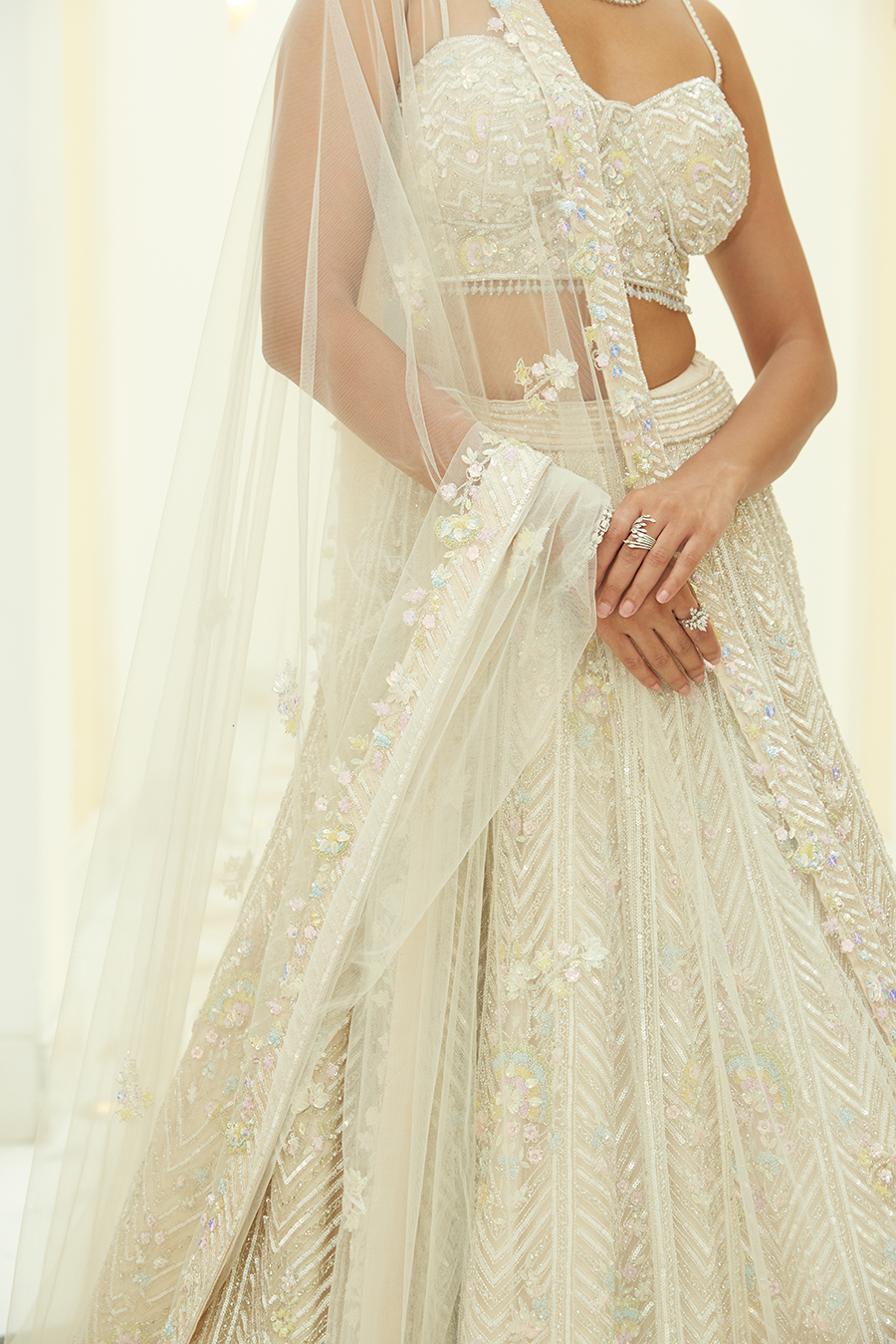 IVORY NET LEHENGA CHOLI SET