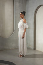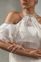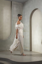 Shop Ivory Ruffle Suit Organza with Satin for a light, elegant look with flowy layers. Ideal for festive brunches. Buy online from Paaro!