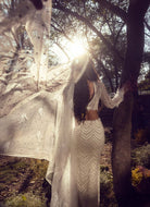 Ivory net skirt and blouse embroidered in tonal beadwork, crystals and sequins with an ivory net veil