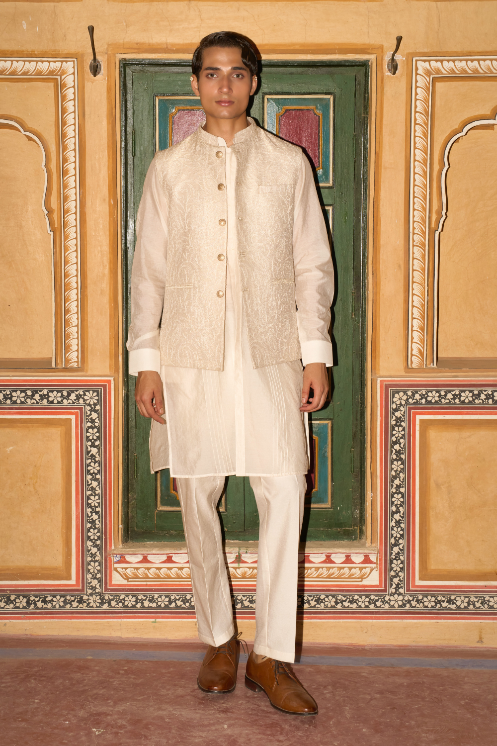Set includes: Kurta, Jacket & Straight Fit Pants