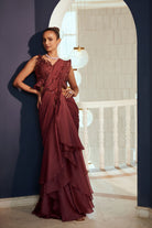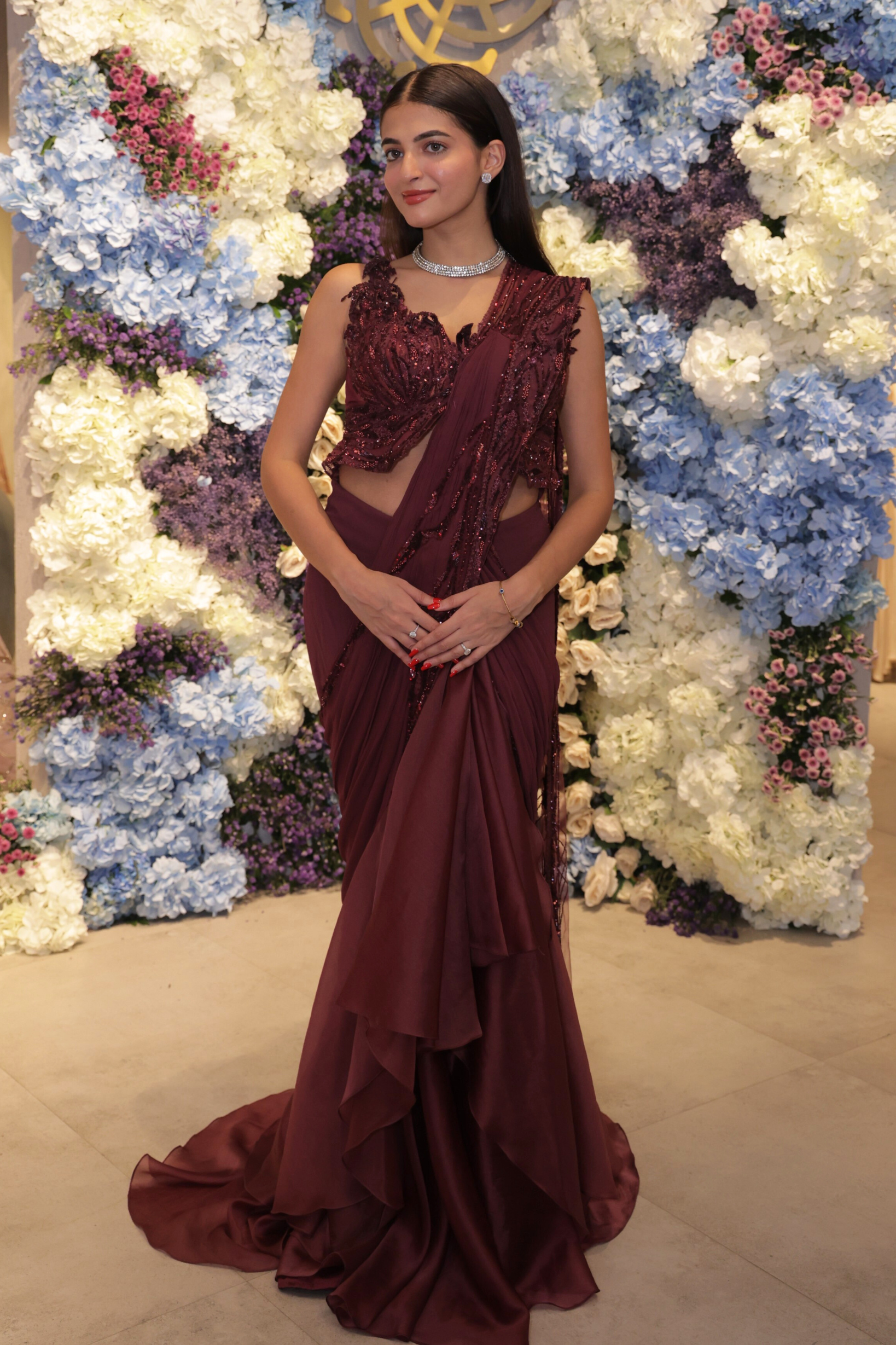 The saree comes with alluring organza drape and blouse detailing inspired by the charismatic beauty of the wings.