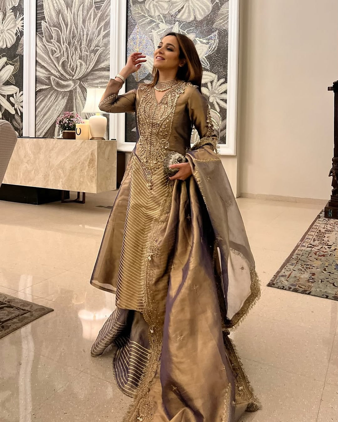Kompal Matta Kapoor in our Purple silk zari tissue anarkali with sharara and dupatta set