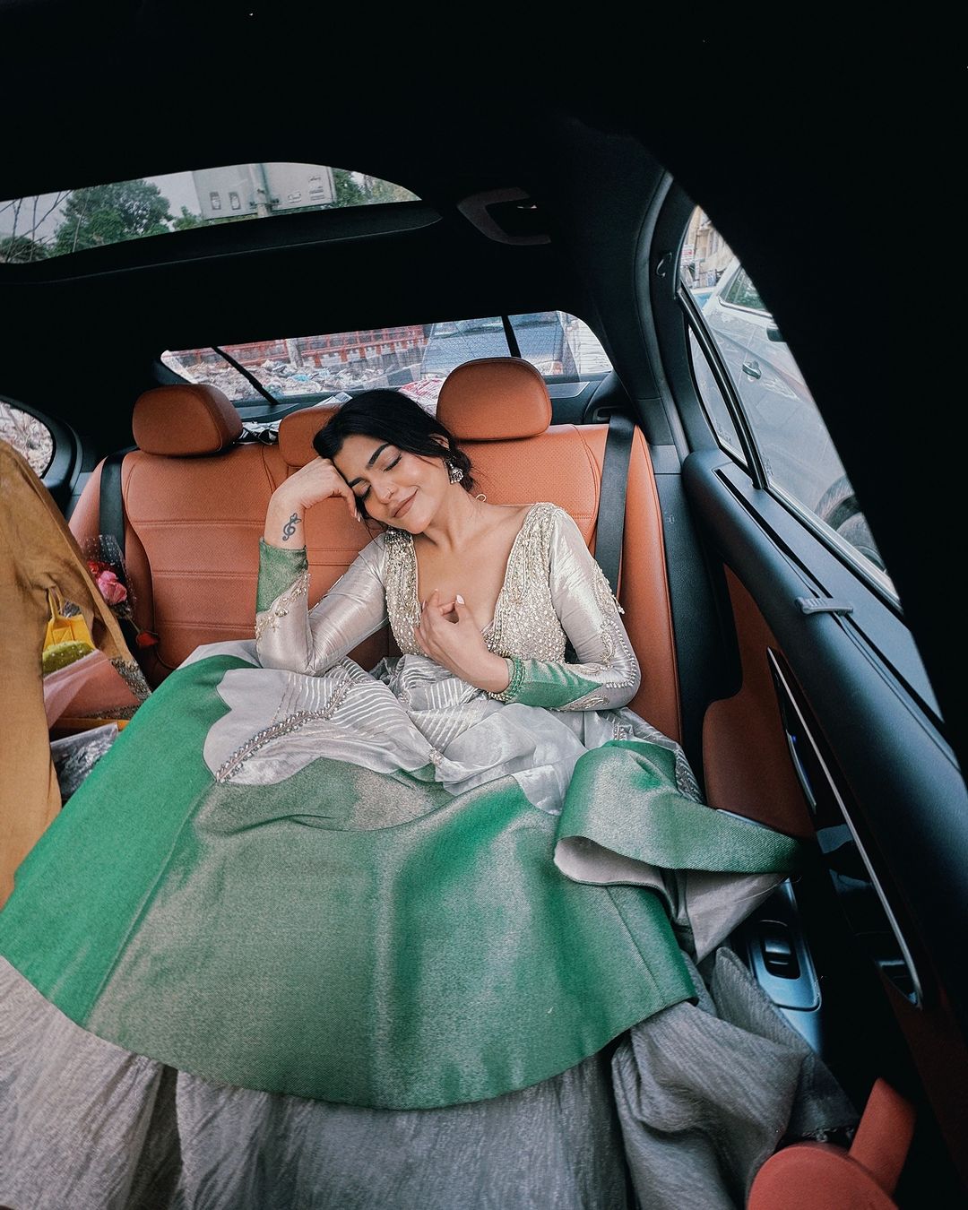 Kritika Khurana in our Pearl gold silk zari tissue jacket with skirt set