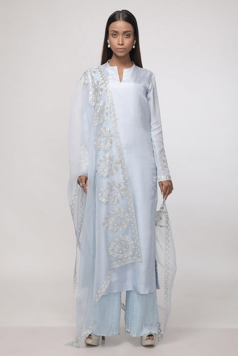 Fabrics : Satin (Kurta), Crinkled Art Satin (Pants) and Silk Organza (Dupatta)