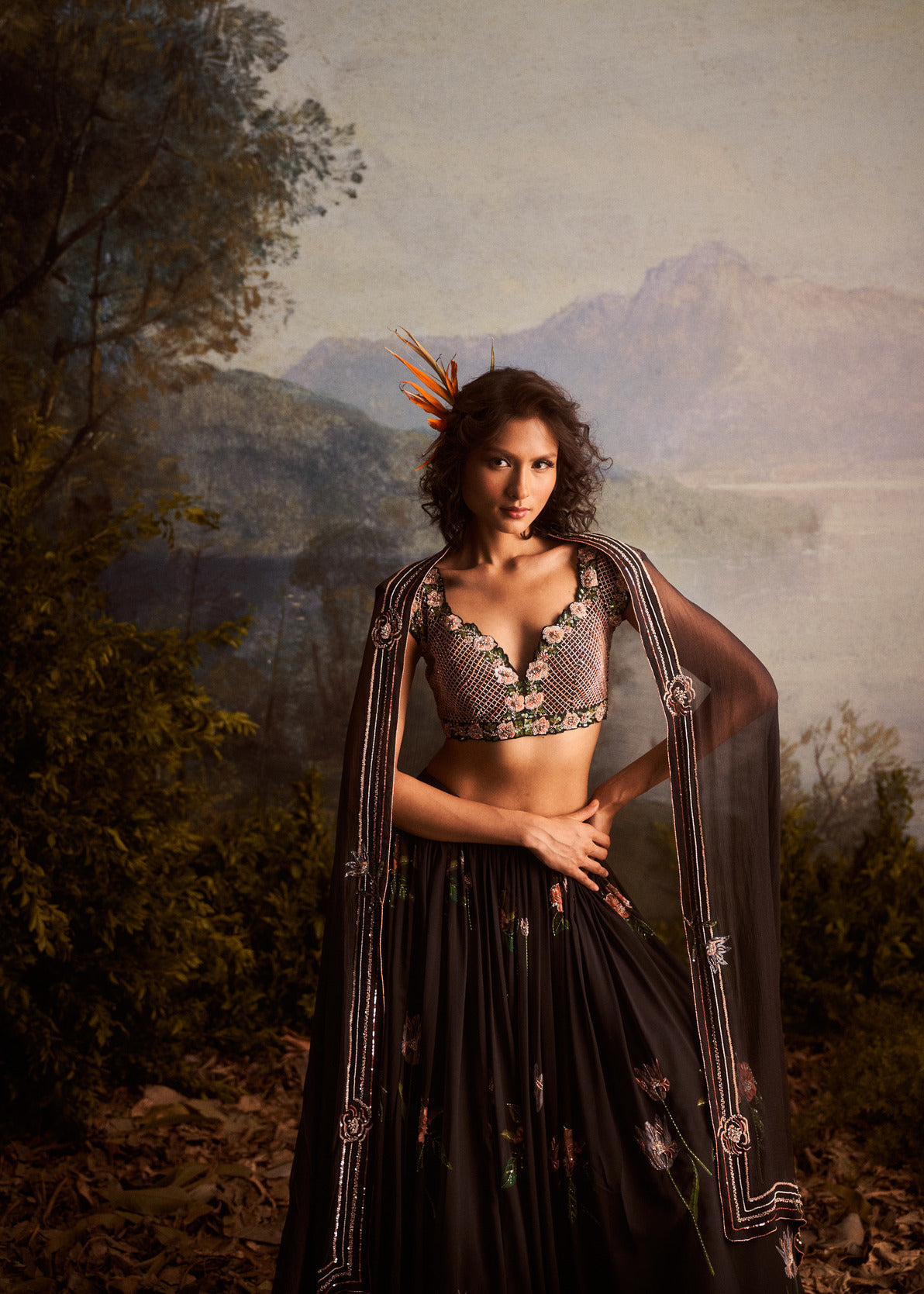 The La Fleur Black Embroidered Lehenga is a captivating ensemble that exudes timeless elegance. With its rich black hue and exquisite floral embroidery, it is a work of art. This lehenga is perfect for special occasions, combining traditional elements with contemporary style.