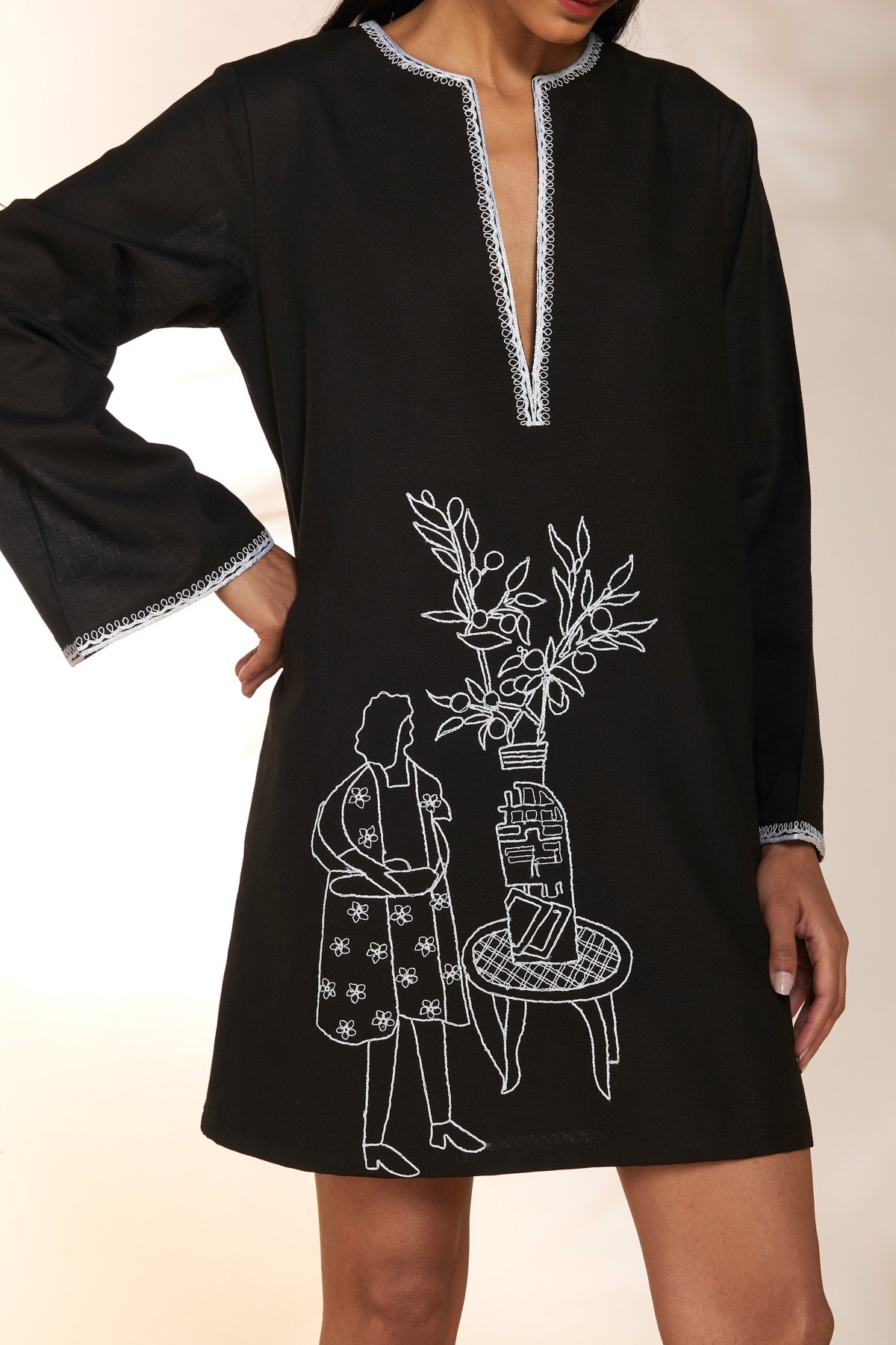 Lady With A Loaf Black Embroidered Dress
