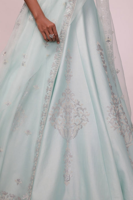 Azure Blossom Mint Lehenga