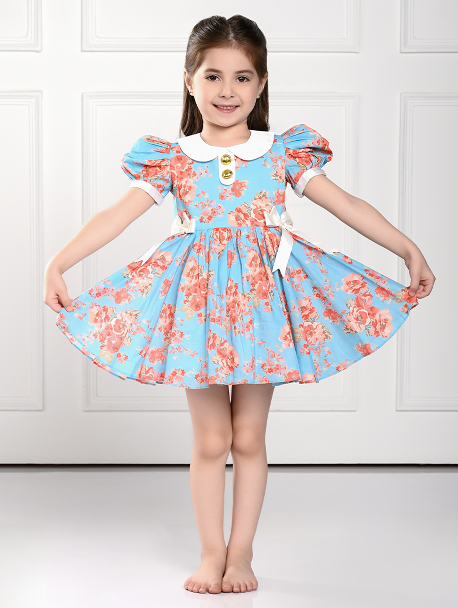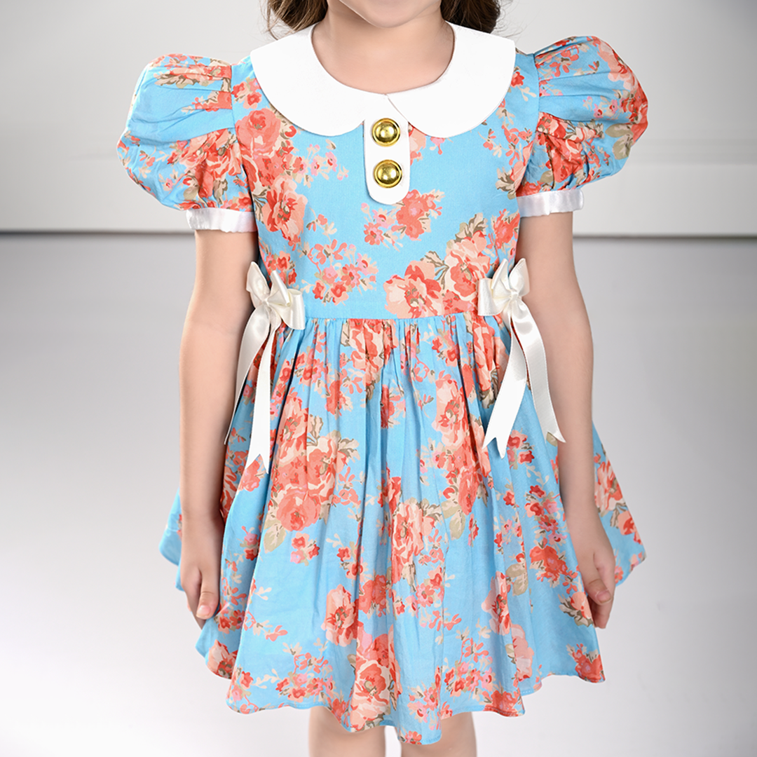 White Peter-Pan Collar, Embellished With Gold Buttons And 2 White Bows