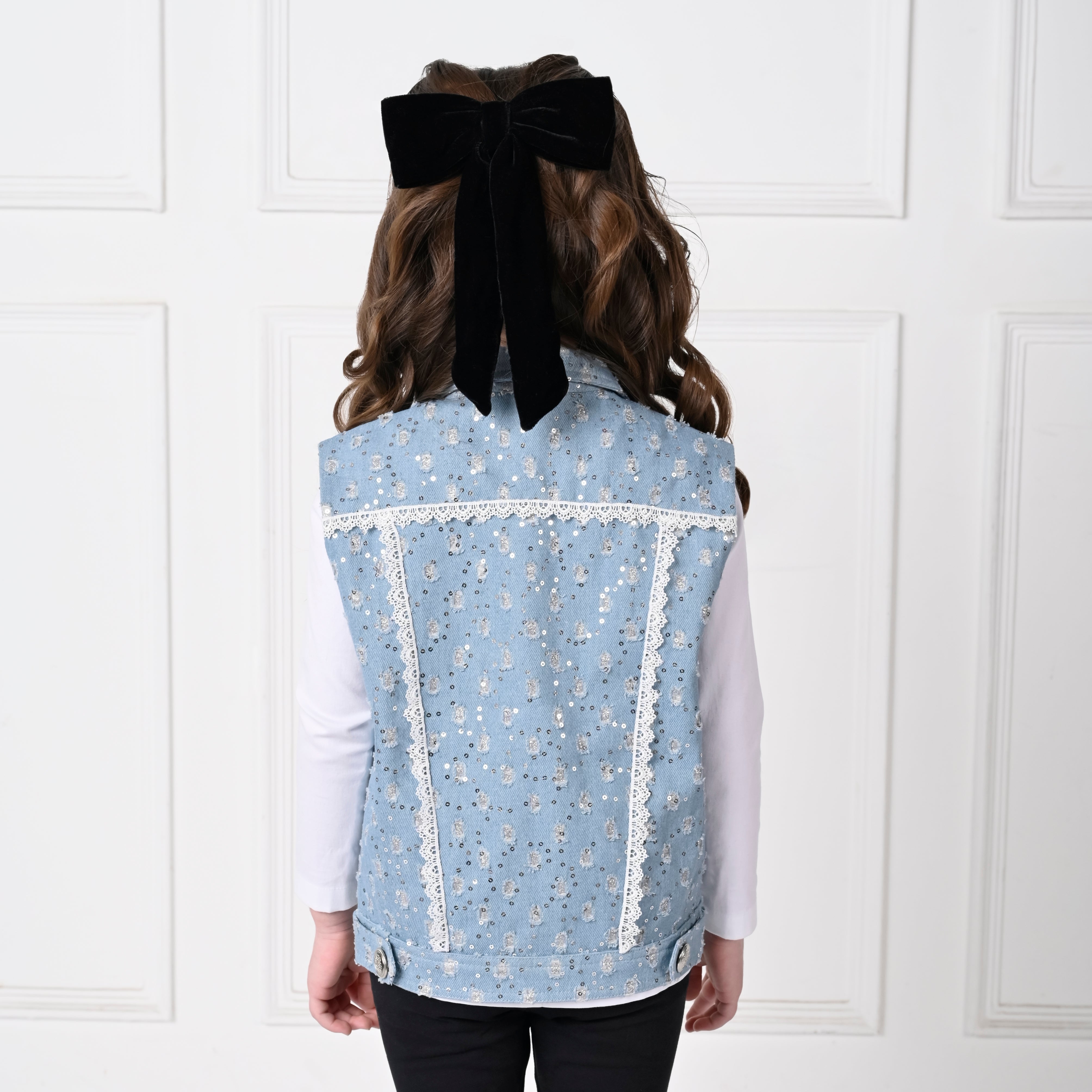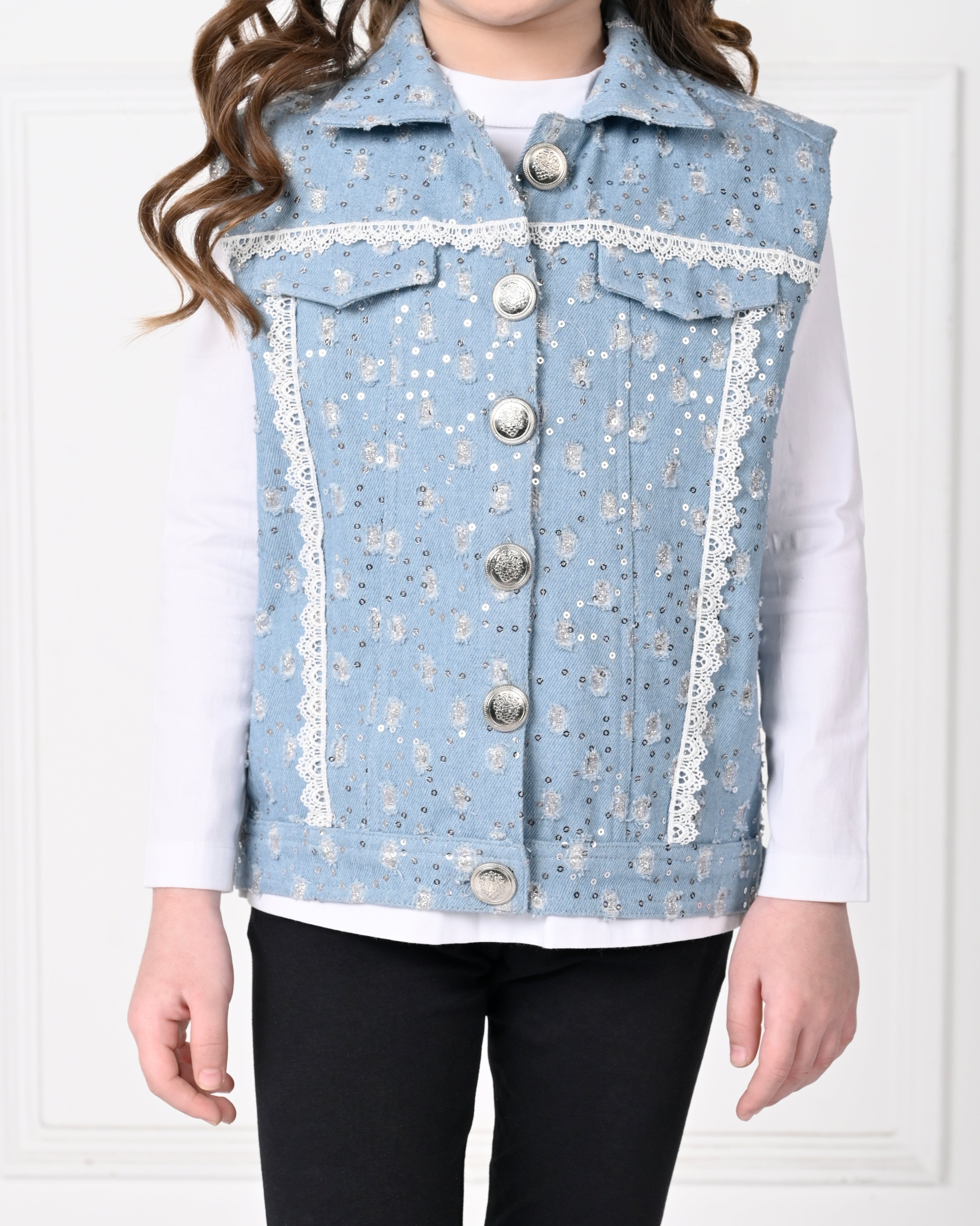 Light Blue Over Size Sleeveless Lace Denim Jacket