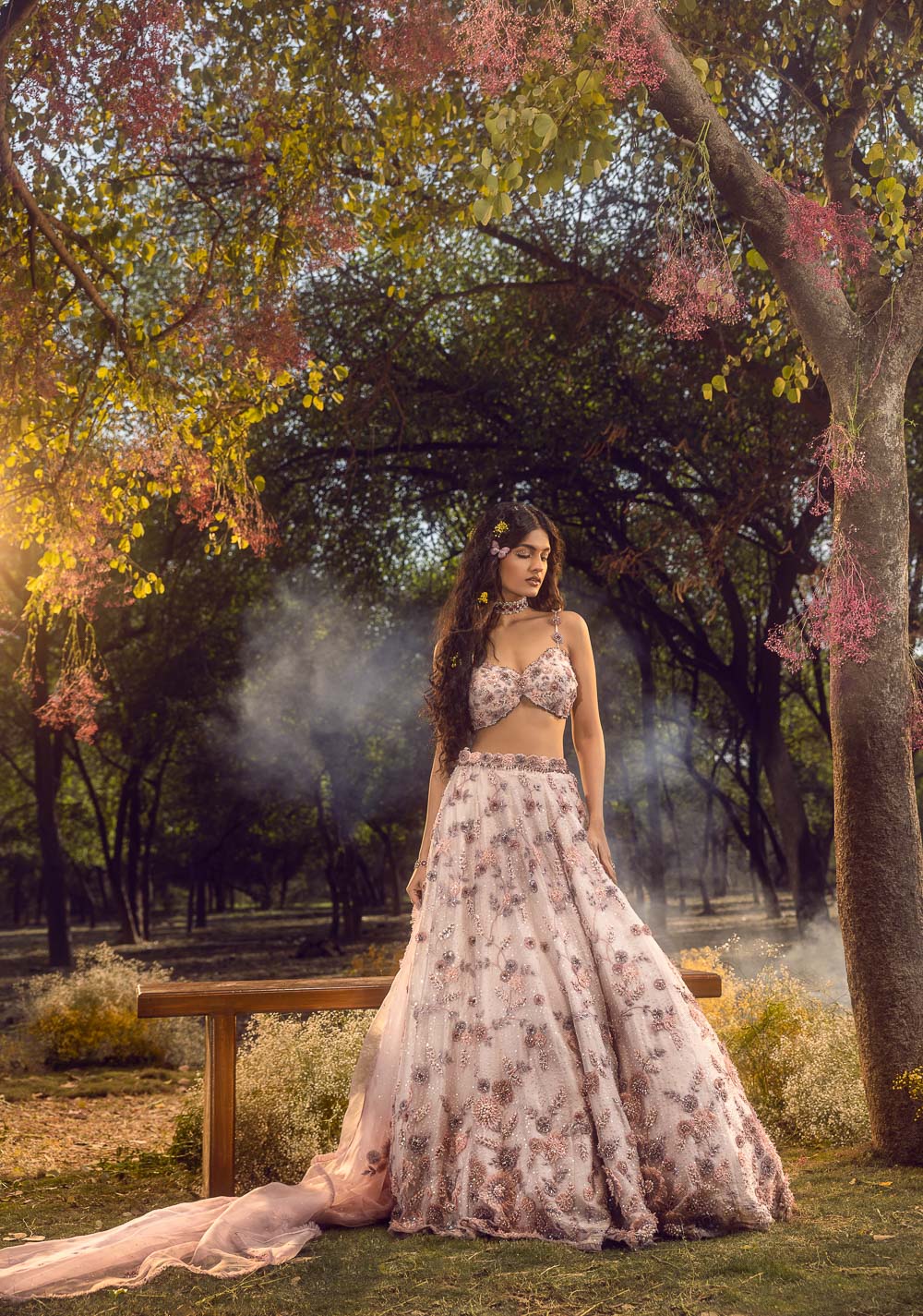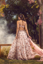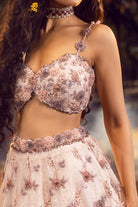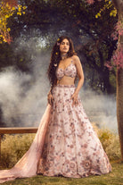 Lilac organza lehenga choli and dupatta intricately embroidered with 3-d floral jaal highlighted with beads, sequins and crystals