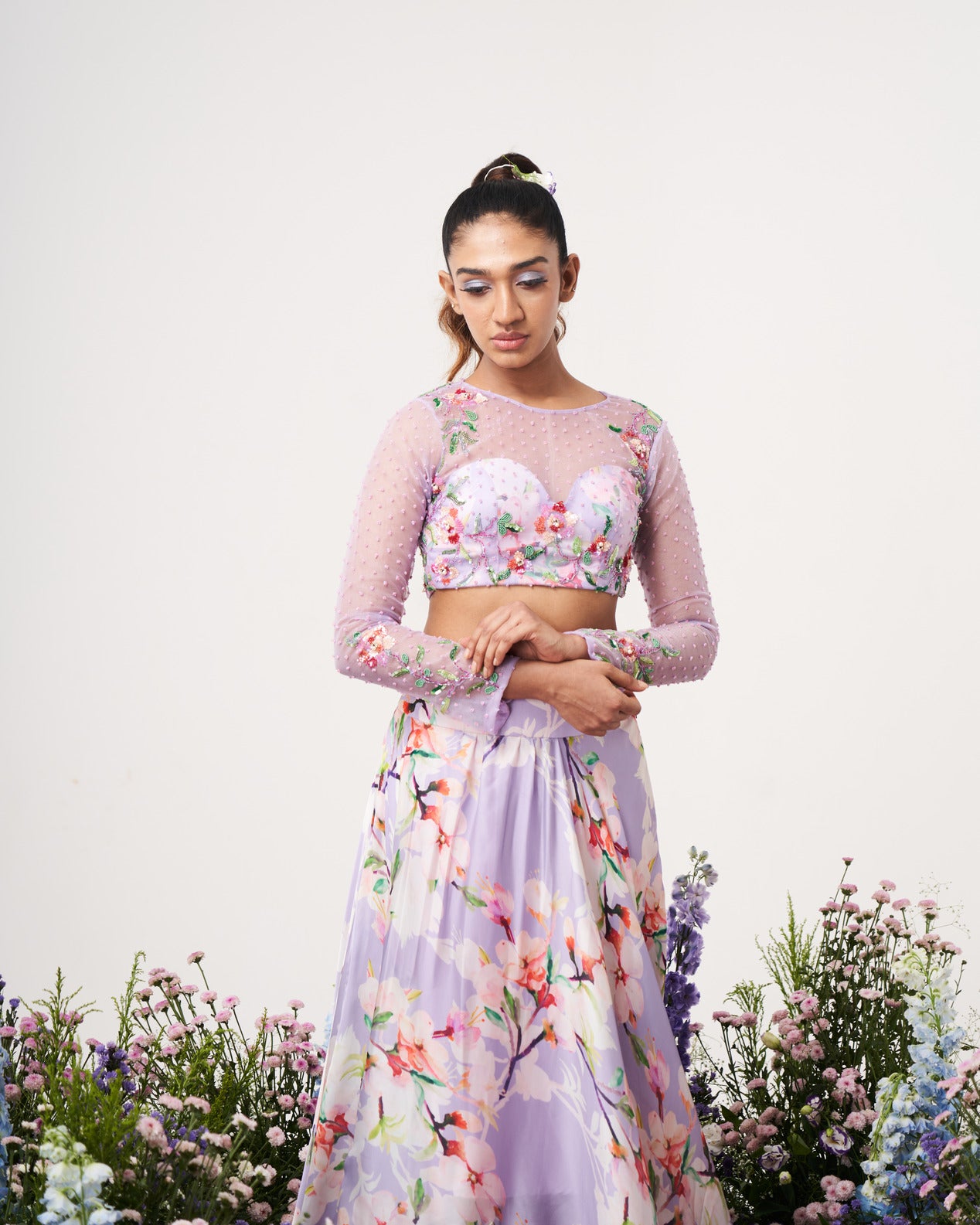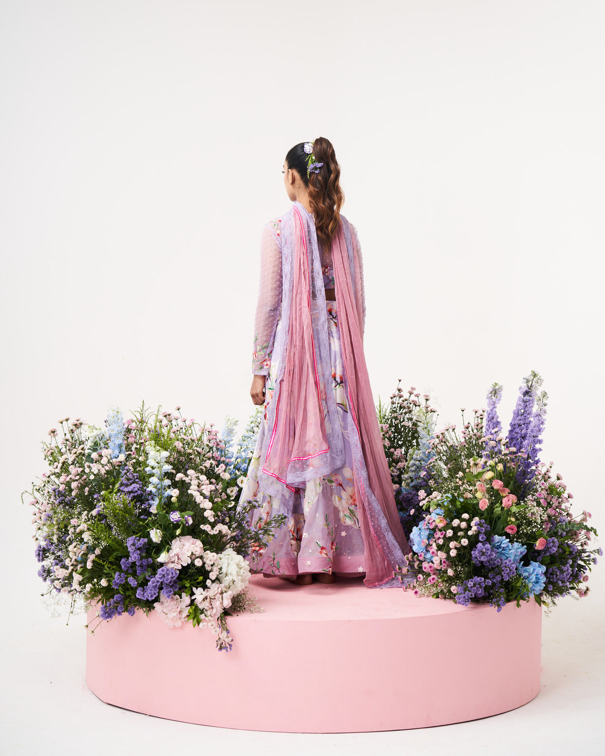 Lilium -Hand Embroidered Lilac Lehenga Set