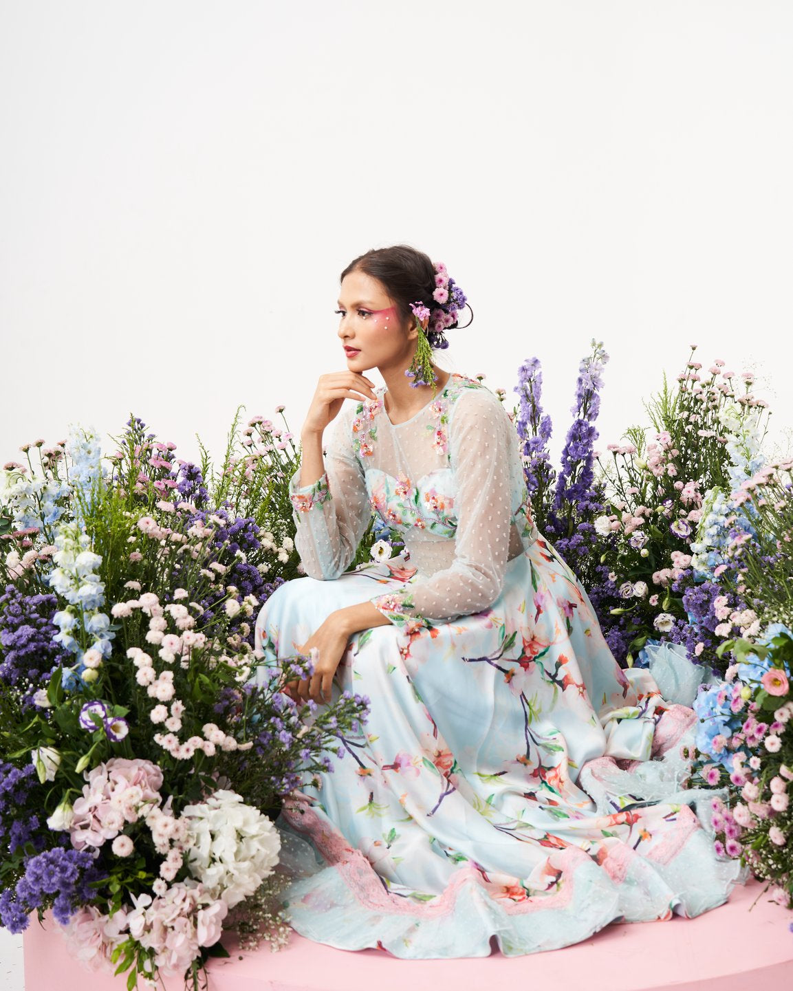 An ice blue embroidered Dress is a stunning traditional Indian outfit featuring a flowing, floor-length garment with intricate embroidery. The ice blue color adds elegance, while the embroidery showcases meticulous craftsmanship with contrasting threads, beads, or sequins. This versatile ensemble is perfect for weddings, festivals, and formal occasions, exuding regal beauty and femininity.