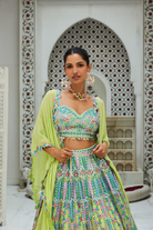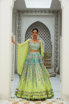 LIME GREEN NET LEHENGA CHOLI SET WITH MULTICOLOURED EMBROIDERY