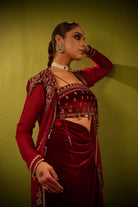 Long Wine Velvet Drape Skirt, Top and Jacket Set
