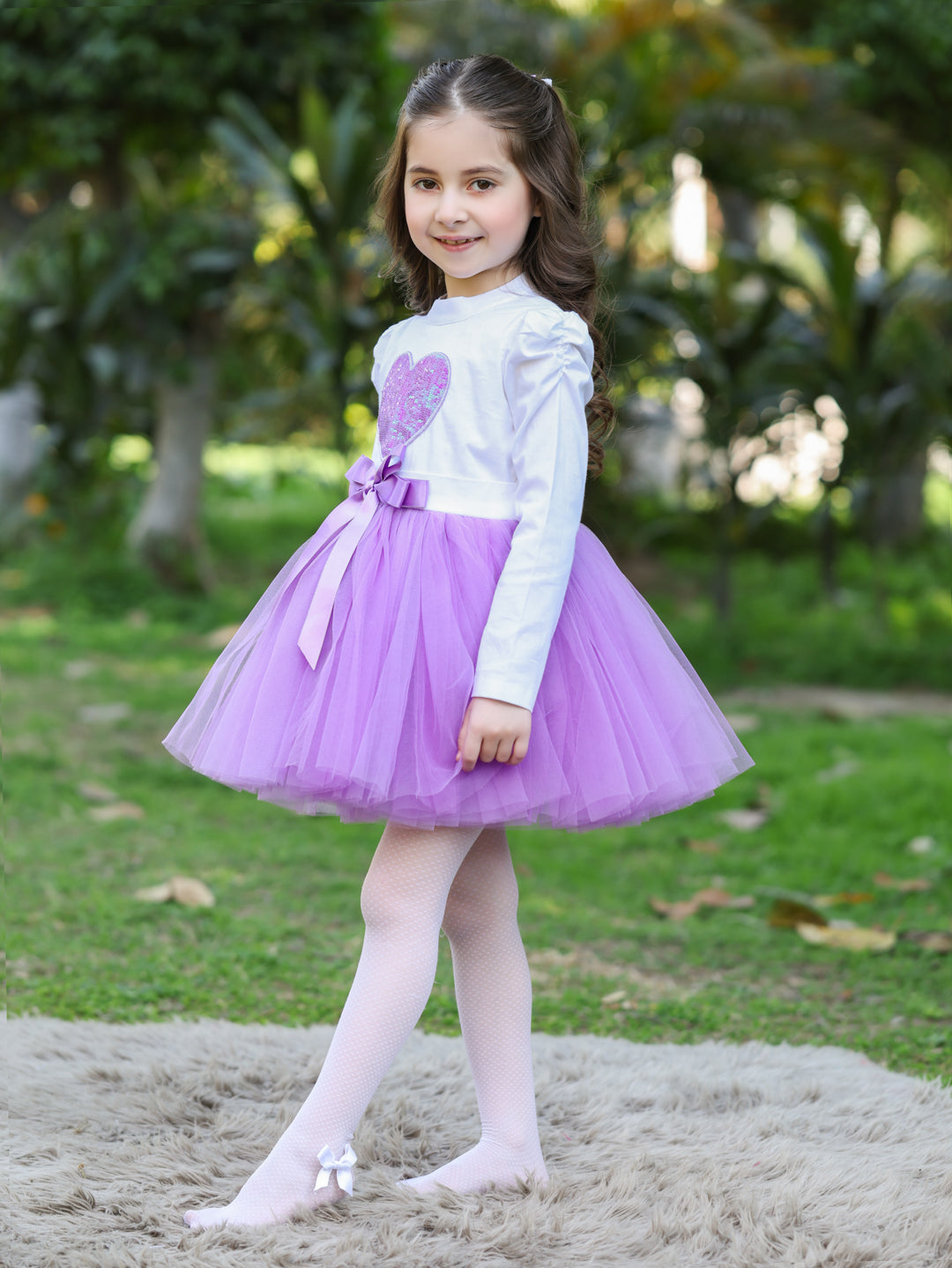 - Colour -White Top With Purple Net On The Bottom, Highlighted With An Embroidered Heart On The Top