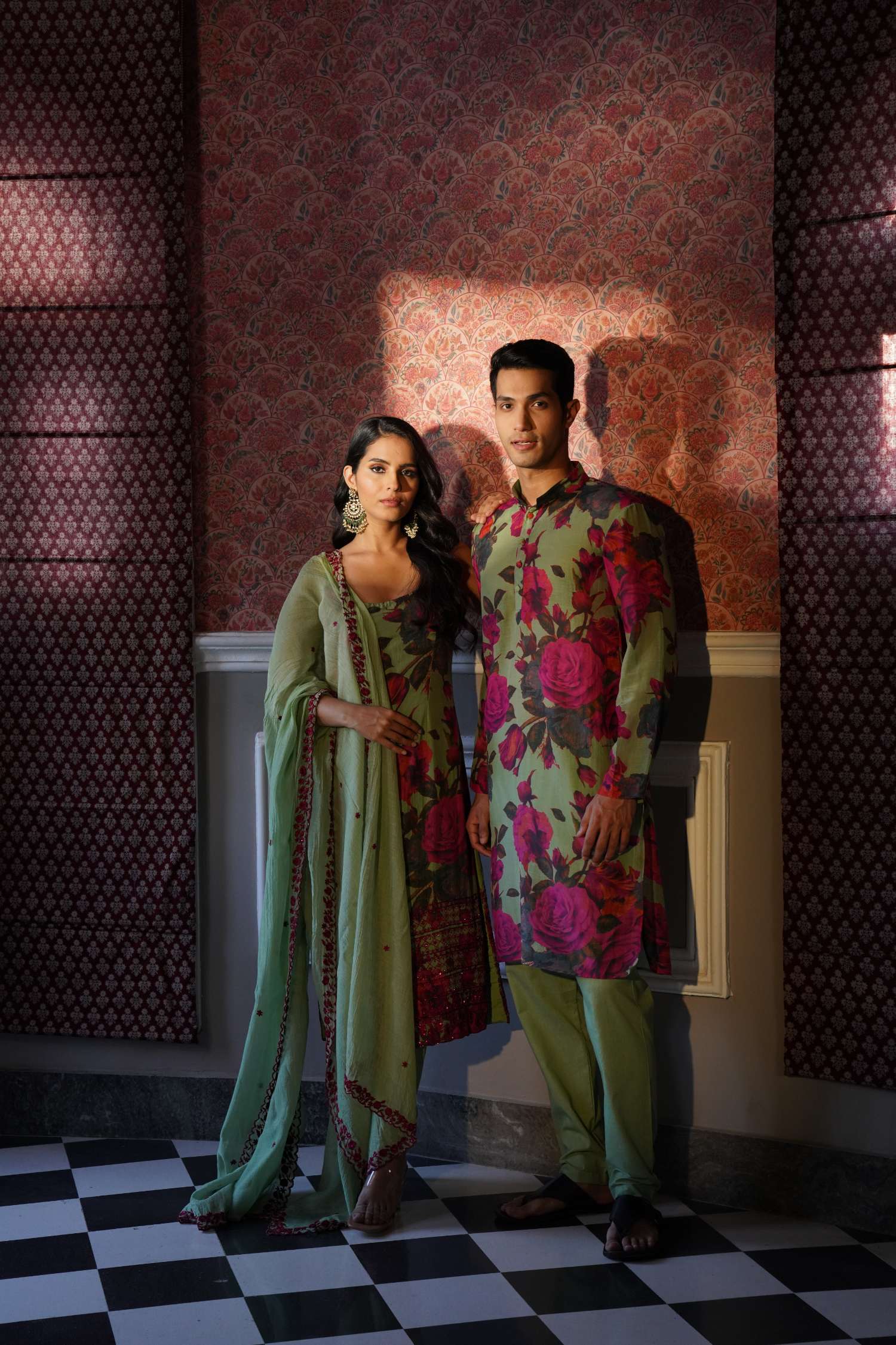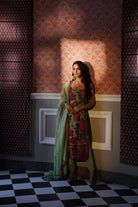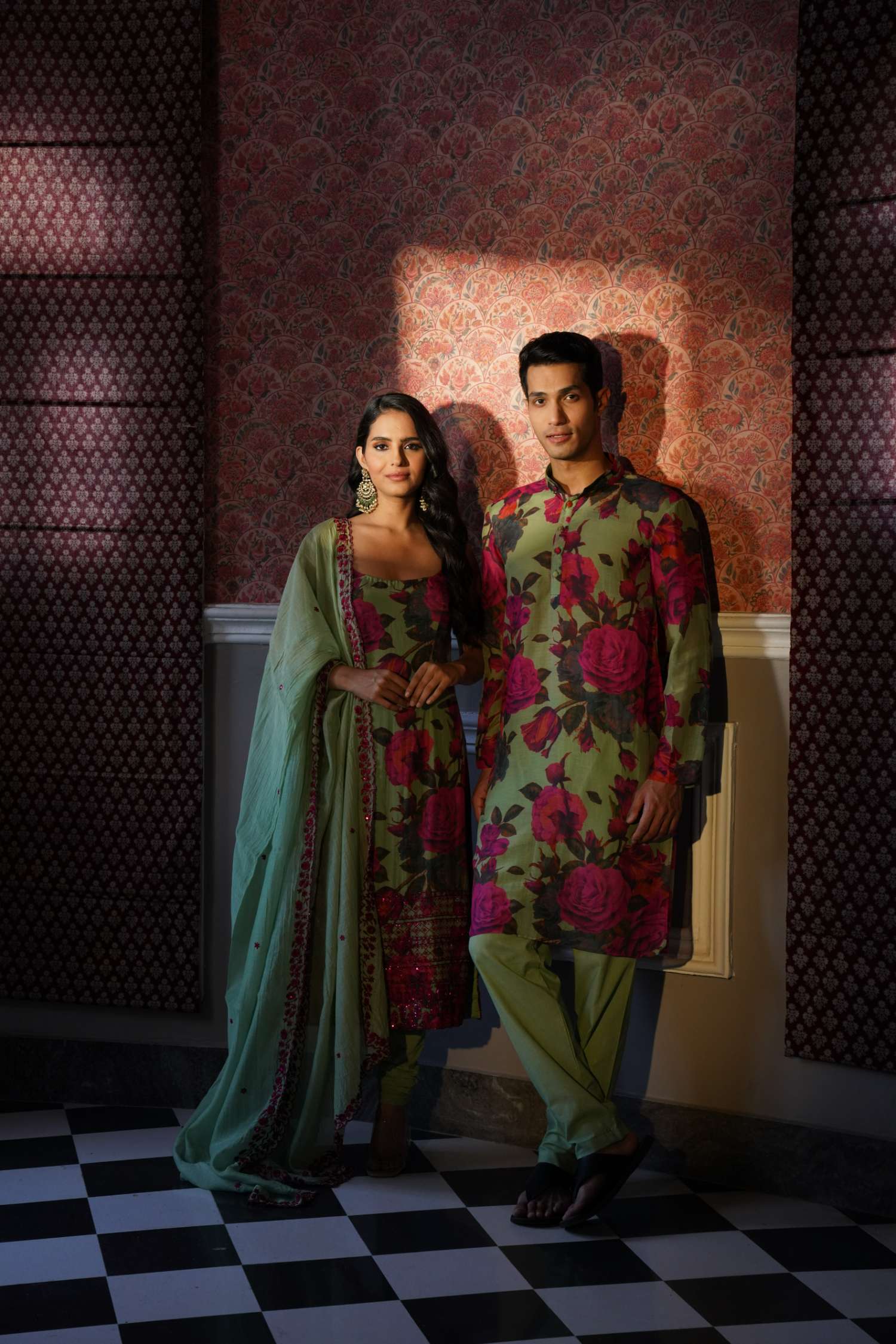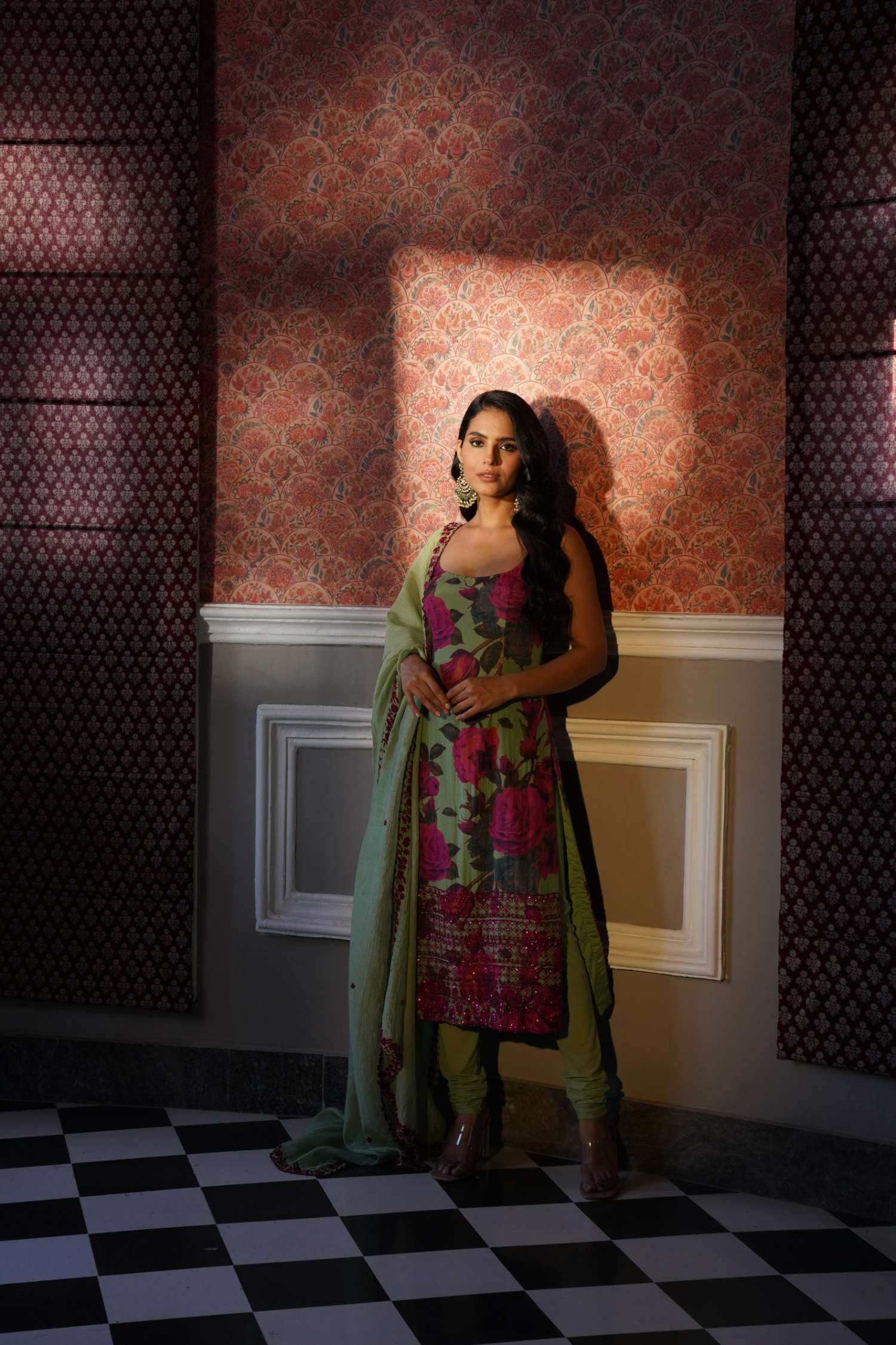 Featuring a Mehendi Green Floral Kurti Set in CHANDERI SILK.