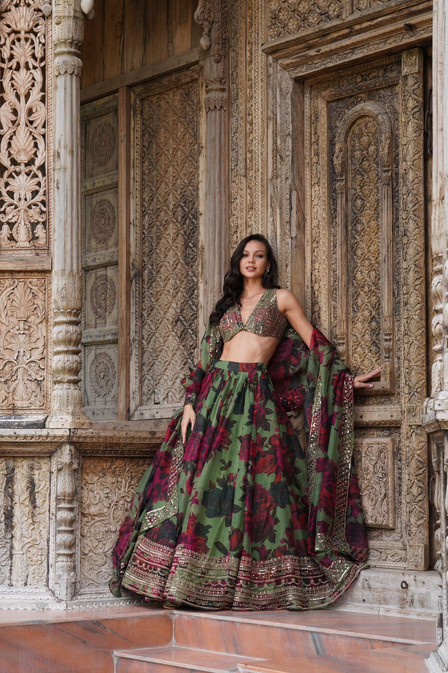 Mehendi Green Floral Lehenga Set