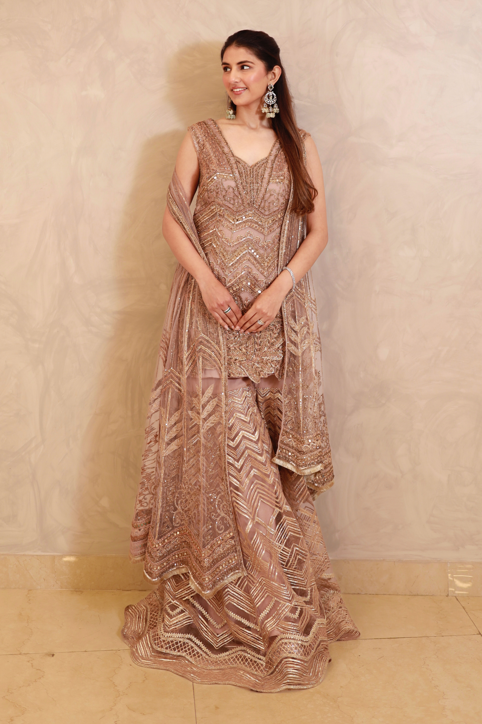 Meher Taluja in Golden Mist Sharara