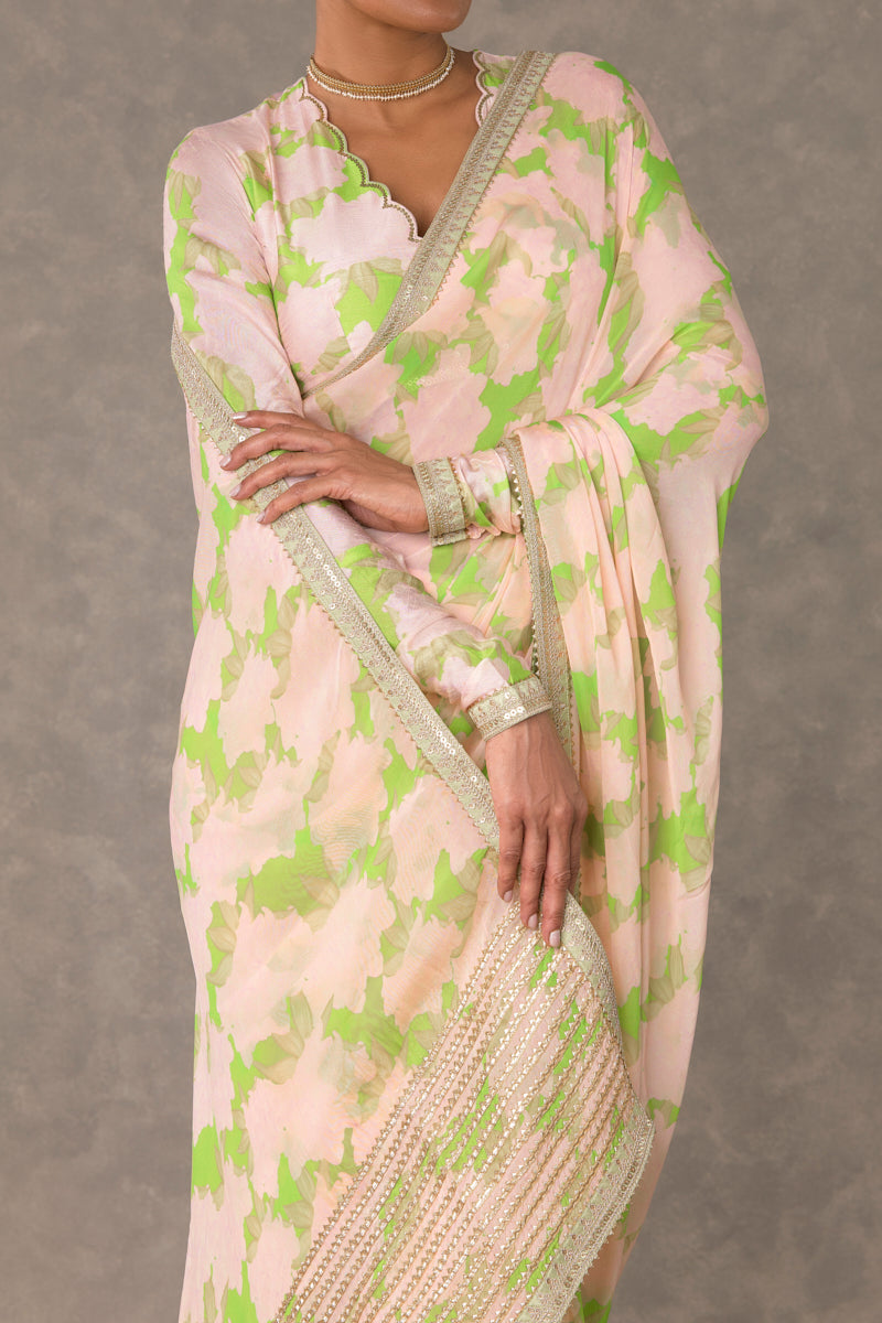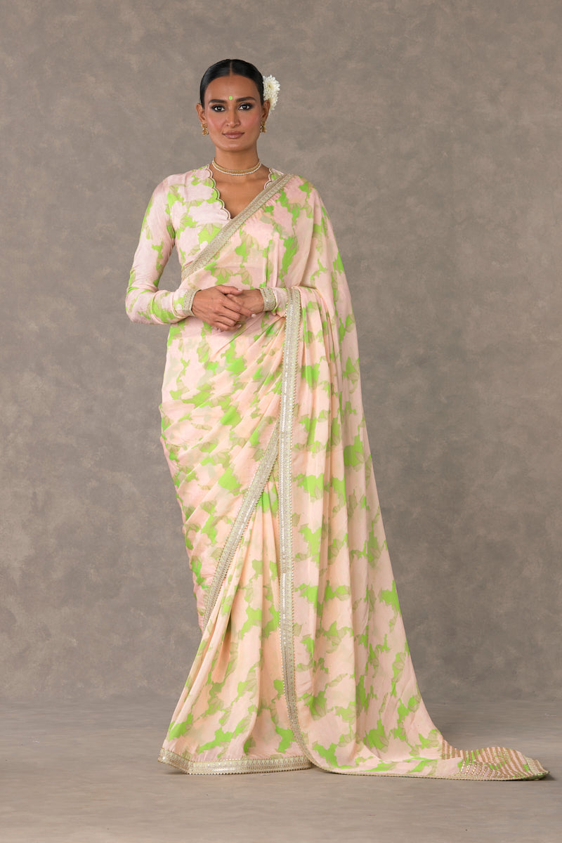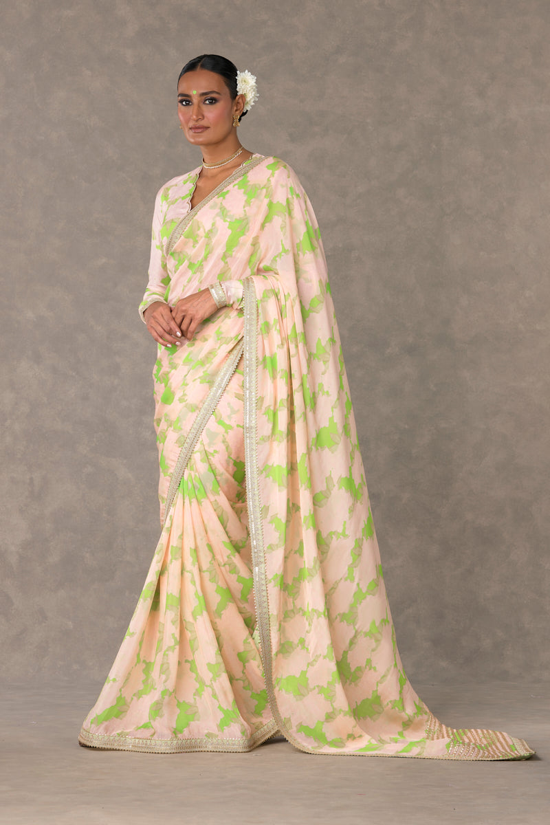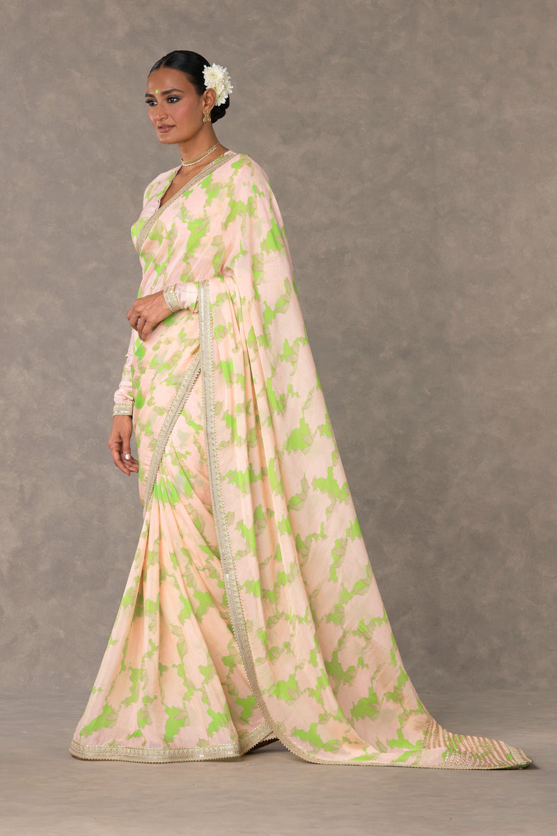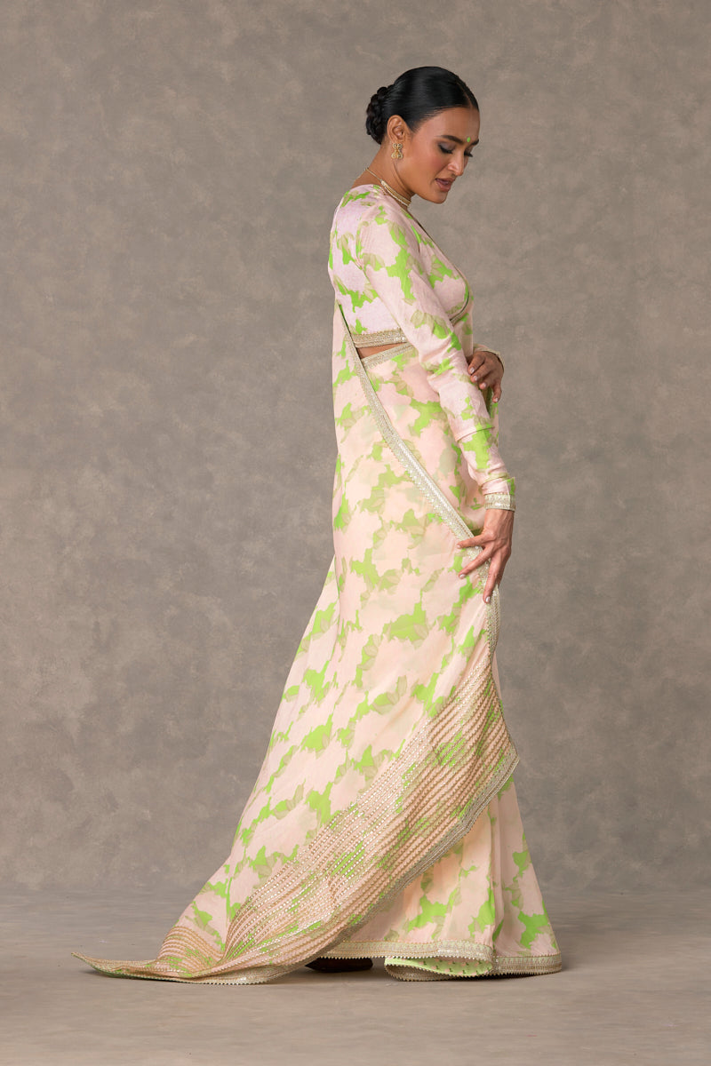 Mint Candy Swirl Organza Saree