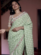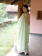 Ethereal and effortlessly graceful, this pastel green saree is a vision of understated luxury. Crafted from a soft, breathable cotton, it drapes like a dream, offering a flattering silhouette.