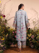 Step into a world of floral elegance with this tranquil blue co-ord set. The relaxed, oversized shirt features delicate floral embroidery along the edges. The matching pants, adorned with complementary floral prints, creates an ensemble perfect for a serene garden gathering or a relaxed evening,