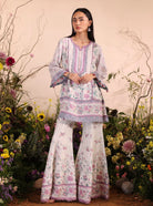 Mulmul Lawn Printed Miran White Kurta With Mulmul Lawn Printed Miran White Garara