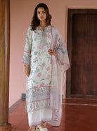 An ode to understated elegance, this three-piece printed kurta set in delicate pastel hues offers timeless charm with a modern soul. Crafted in the lightest Lawn fabric, the kurta is adorned with floral motifs in soft hues that bloom against the pristine base. The straight silhouette is enhanced with a finely embroidered neckline and ornate detailing on the sleeves and hemline, evoking a graceful balance of romance and refinement. Paired with classic white straight trousers for a clean, effortless look, this set is designed to keep you comfortable and stylish all day long.