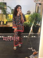 The Saurmi Co-ord Set in classic black is your go-to for festive chic with a modern twist. The top features a delicate floral print acros the garment which exudes femininity. It's relaxed yet flattering fit pairs effortlessly with matching straight pants, giving a polished, put-together look.