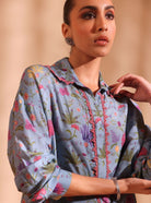 Mulmul Lawn Printed Sene Denim Kurta With Mulmul Lawn Printed Sene Denim Pant