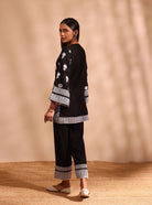A timeless expression of elegance, this black and white short kurta set is a refined take on monochrome dressing. The black base of the kurta is adorned with intricate white floral bootis, balanced beautifully with a delicately embroidered border on the neckline, hemline, and sleeves. The structured silhouette make it effortlessly flattering and ideal for both everyday sophistication and semi-formal wear.