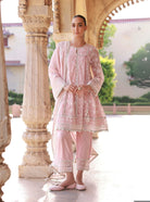 The Anmika Kurta in Pink is all things soft, sweet, and celebration-ready. Crafted in delicate organza, this charming silhouette is drenched in detailed pitha embroidery that blooms across the kurta, sleeves, and hem; making every thread a story in itself. The round neckline, and sheer embroidered sleeves- add a hint of romance.