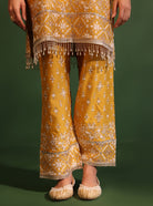 The set is completed with a beautifully embroidered dupatta, featuring intricate patterns and tassel detailing at the edges, adding a subtle statement to the ensemble.