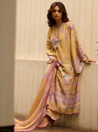 Softened with pastels, this printed linen Kurta set brings a romantic flourish to everyday dressing. The Pia kurta, tailored in breathable linen, features a painterly floral print in shades of pink and sage that dances across a warm and muted yellow base. Finished with tasselled tie-up detailing at the neckline and gracefully flared sleeves, it captures easy femininity.