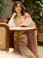 Mulmul Printed Linen Pia Yellow Kurta With Mulmul Printed Linen Pia Yellow Pant