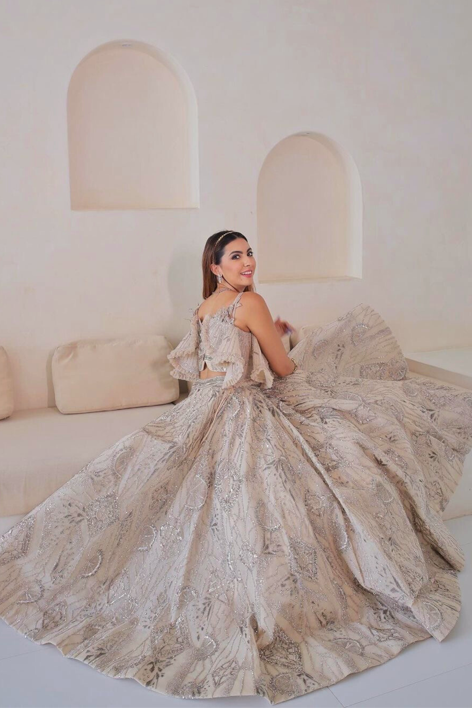 Niki Mehra in Blushed Pastel Wings Lehenga