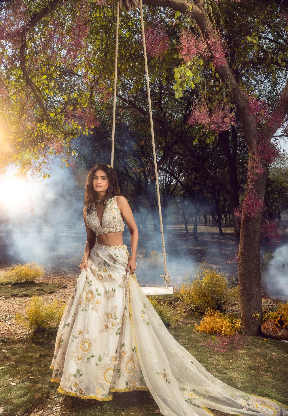 Off White 3D Lehenga Set