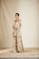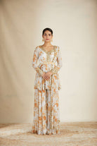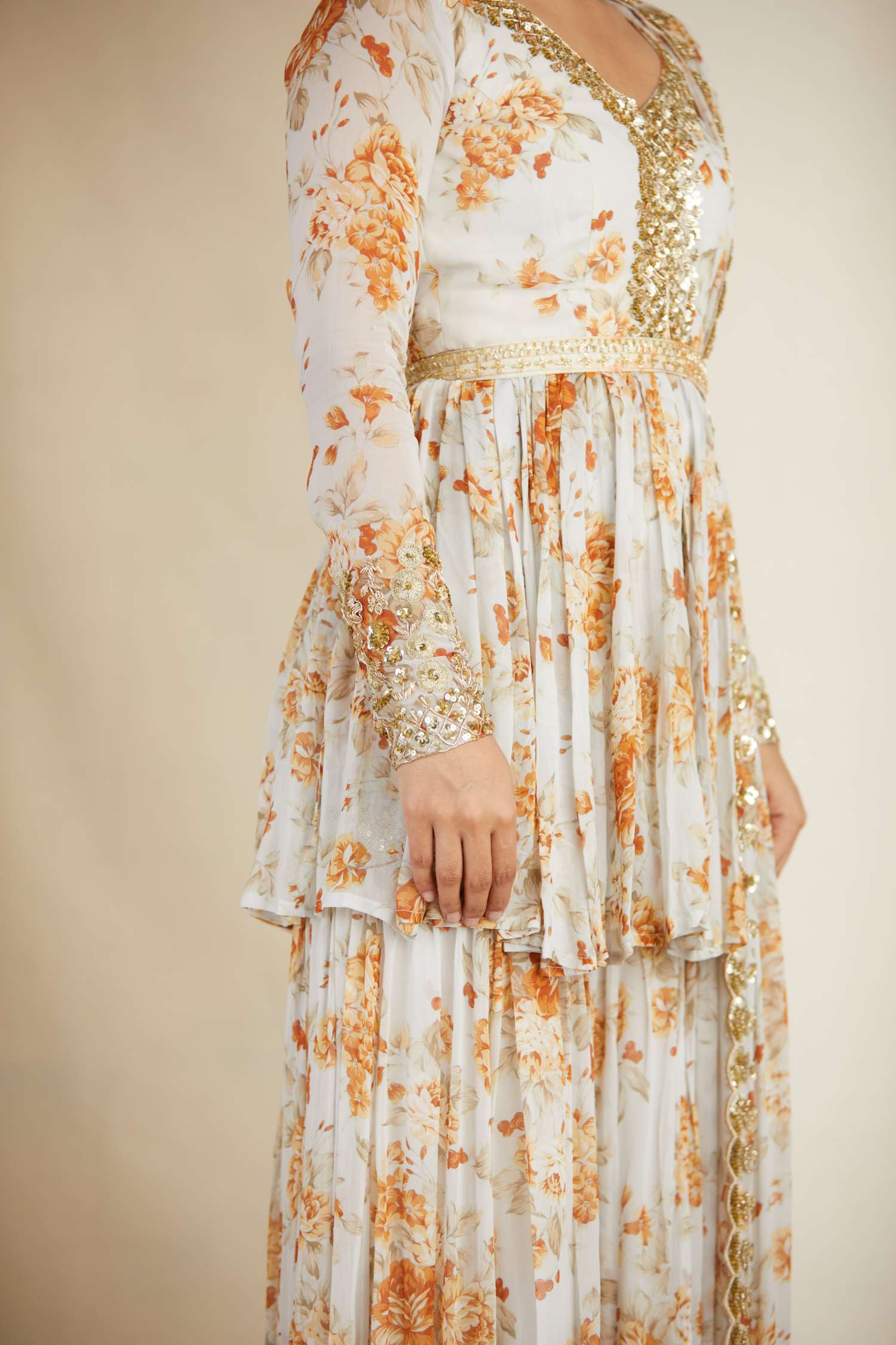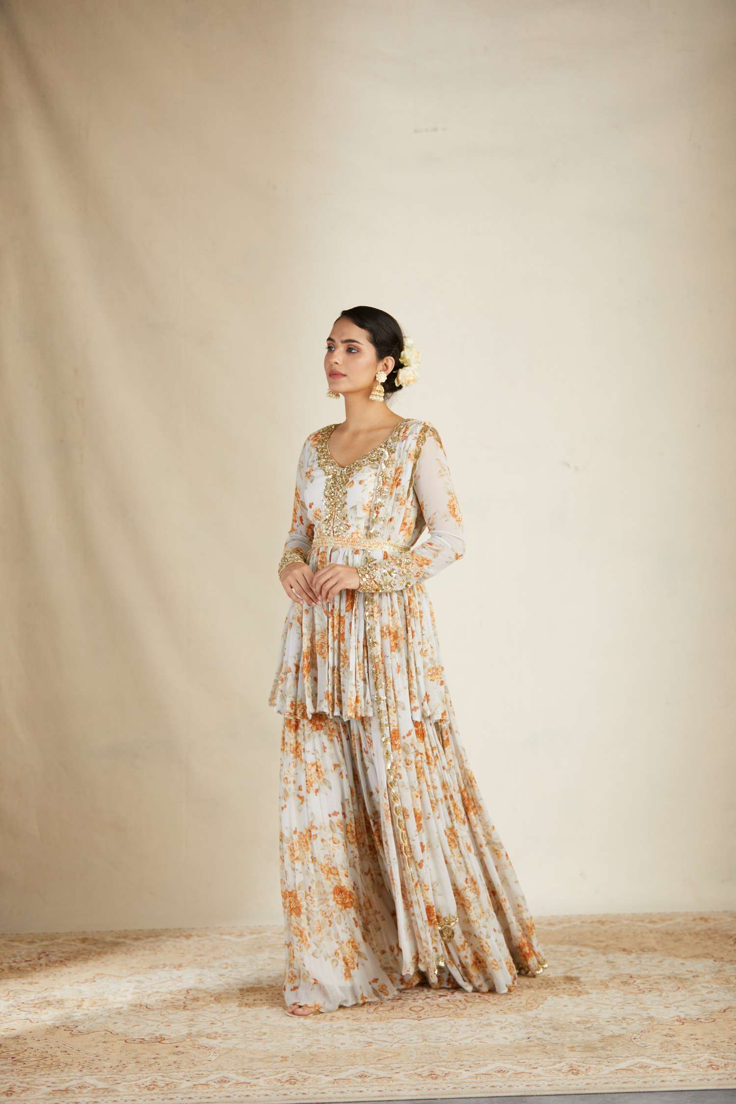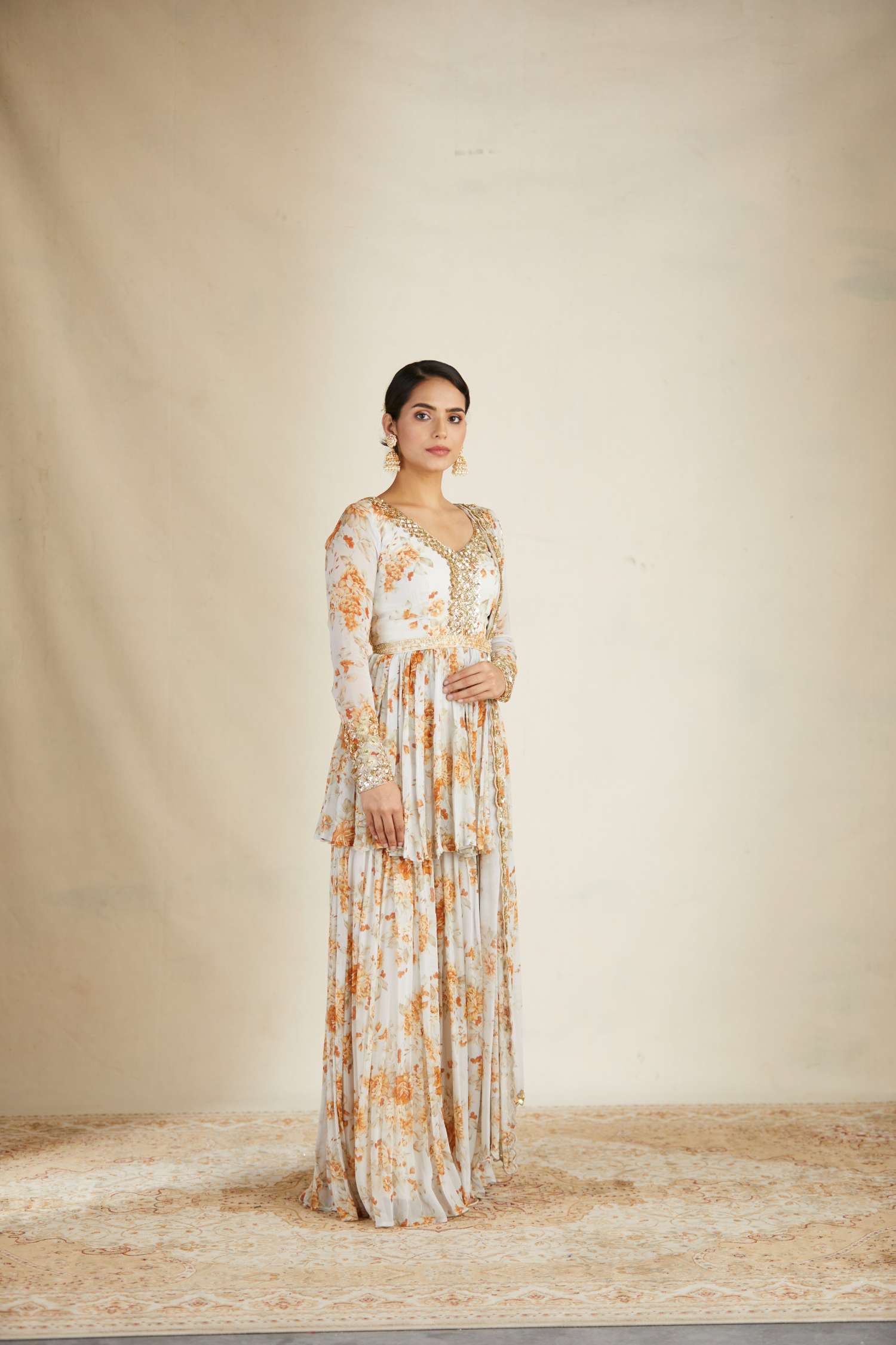 Featuring a Off White Floral Peplum & Sharara Set in Georjette.