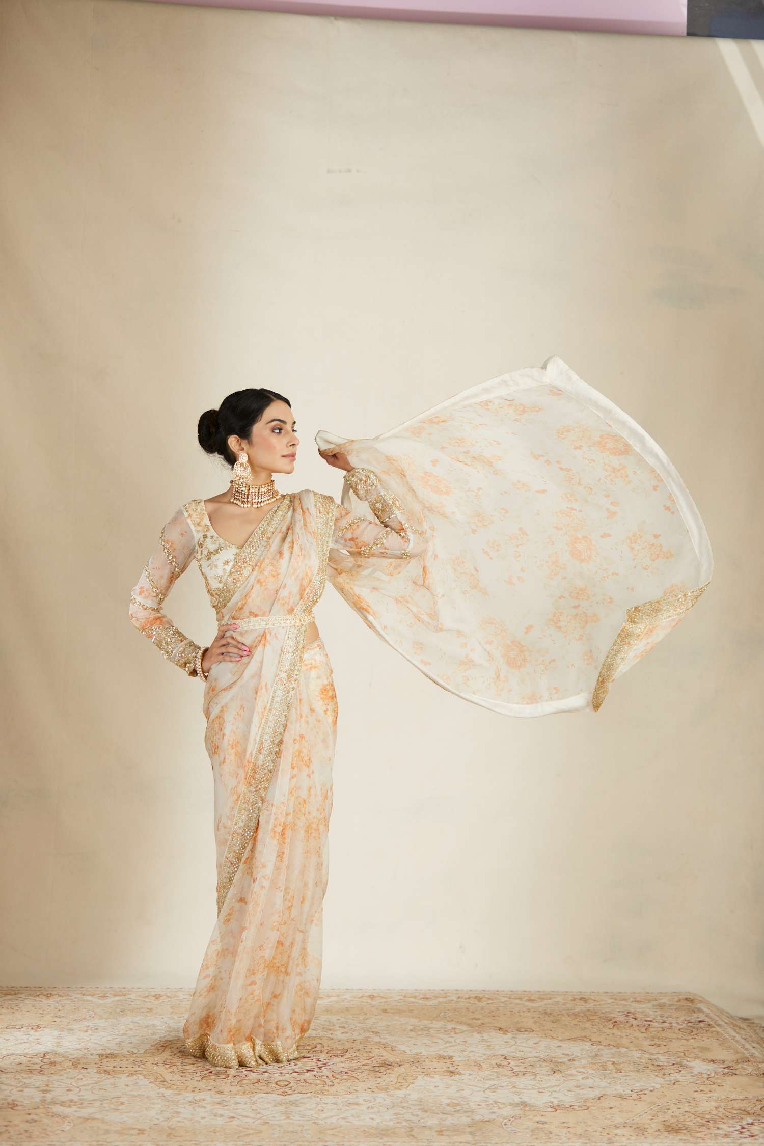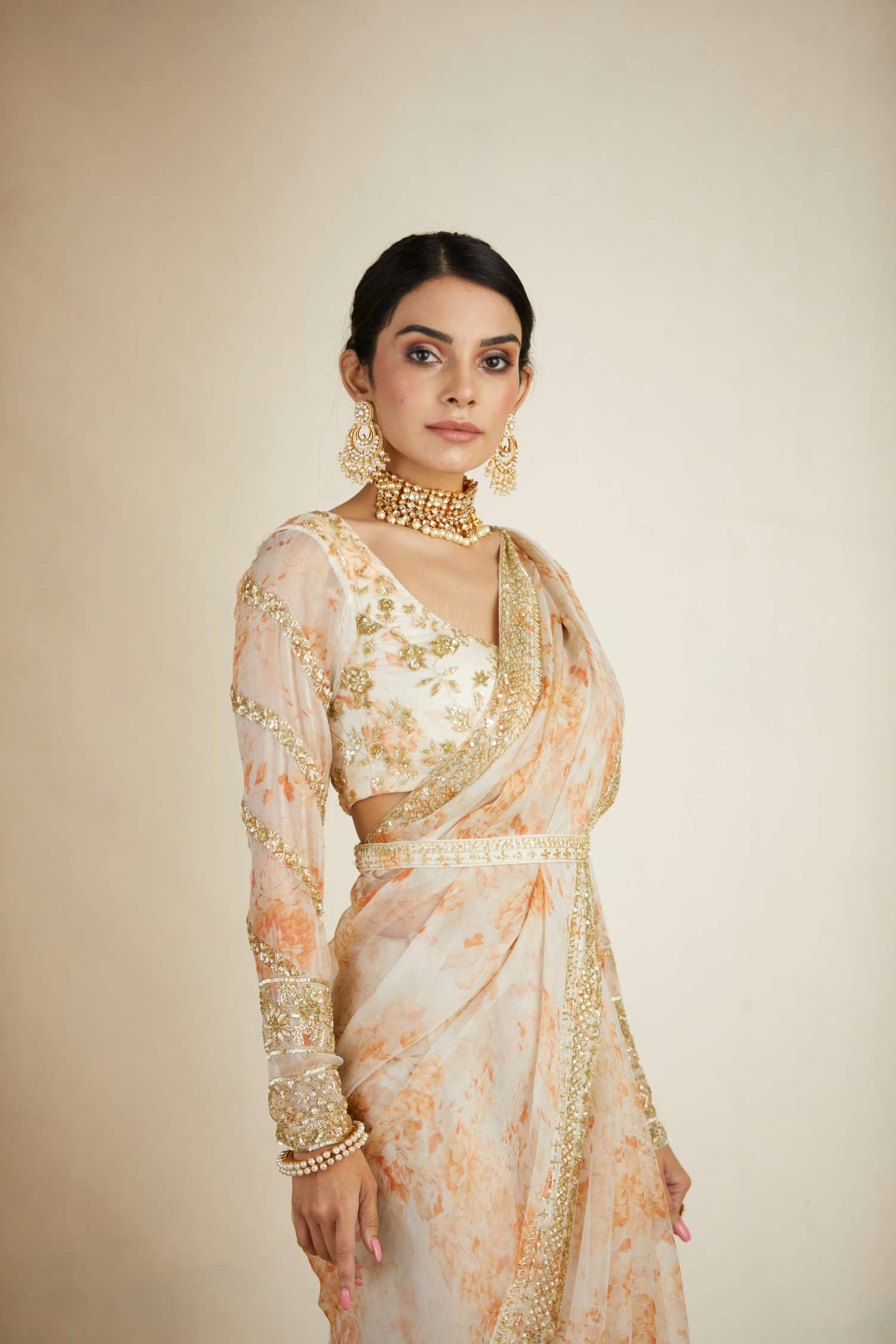 Featuring a Off White Floral Saree Set in Organza.