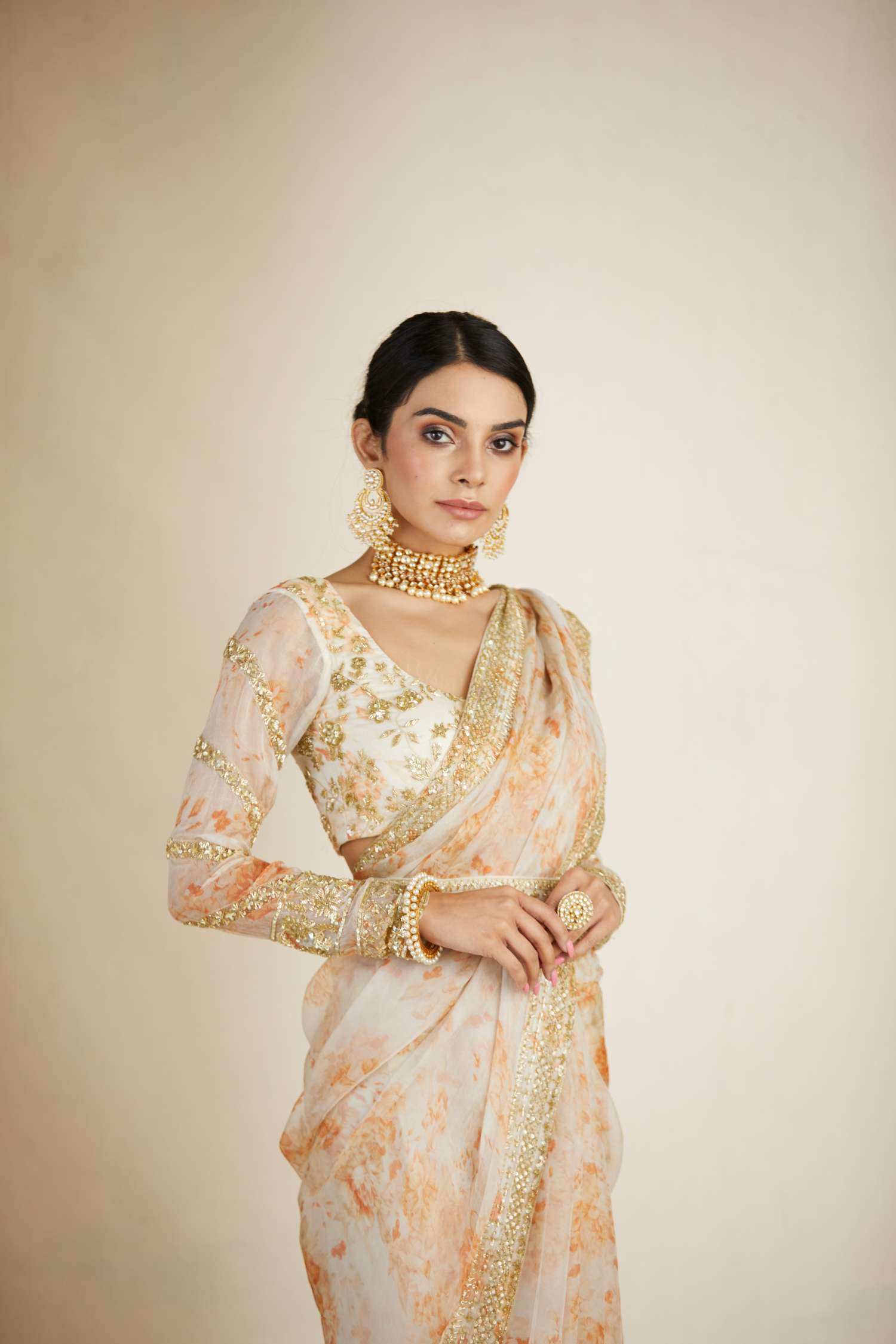 Off White Floral Saree